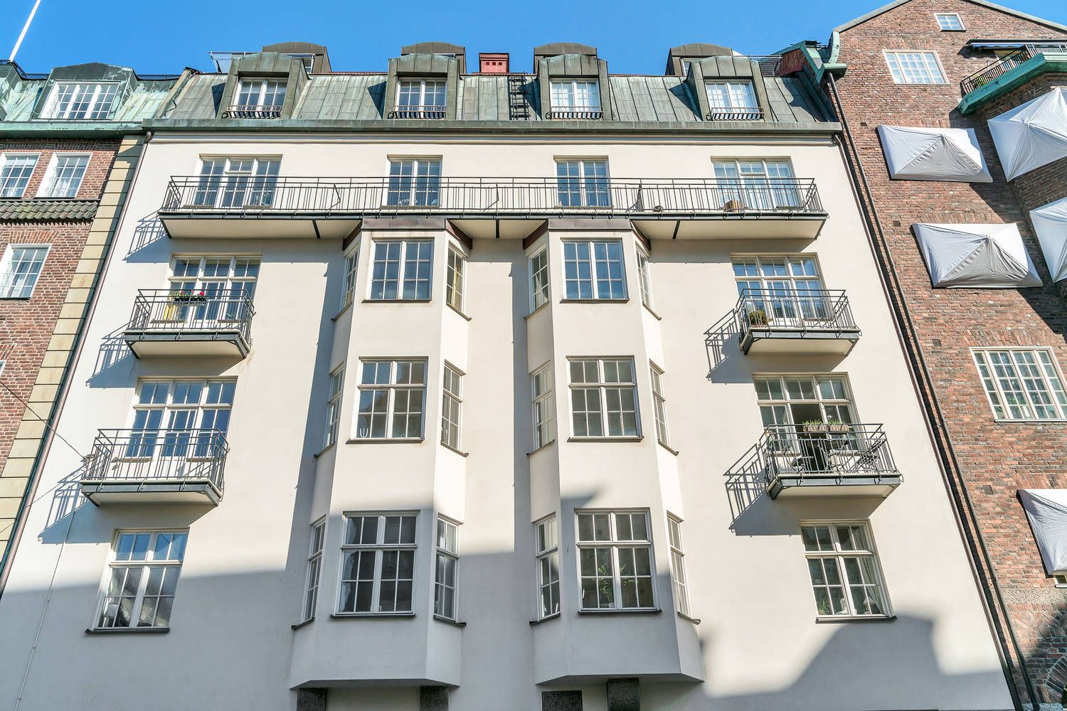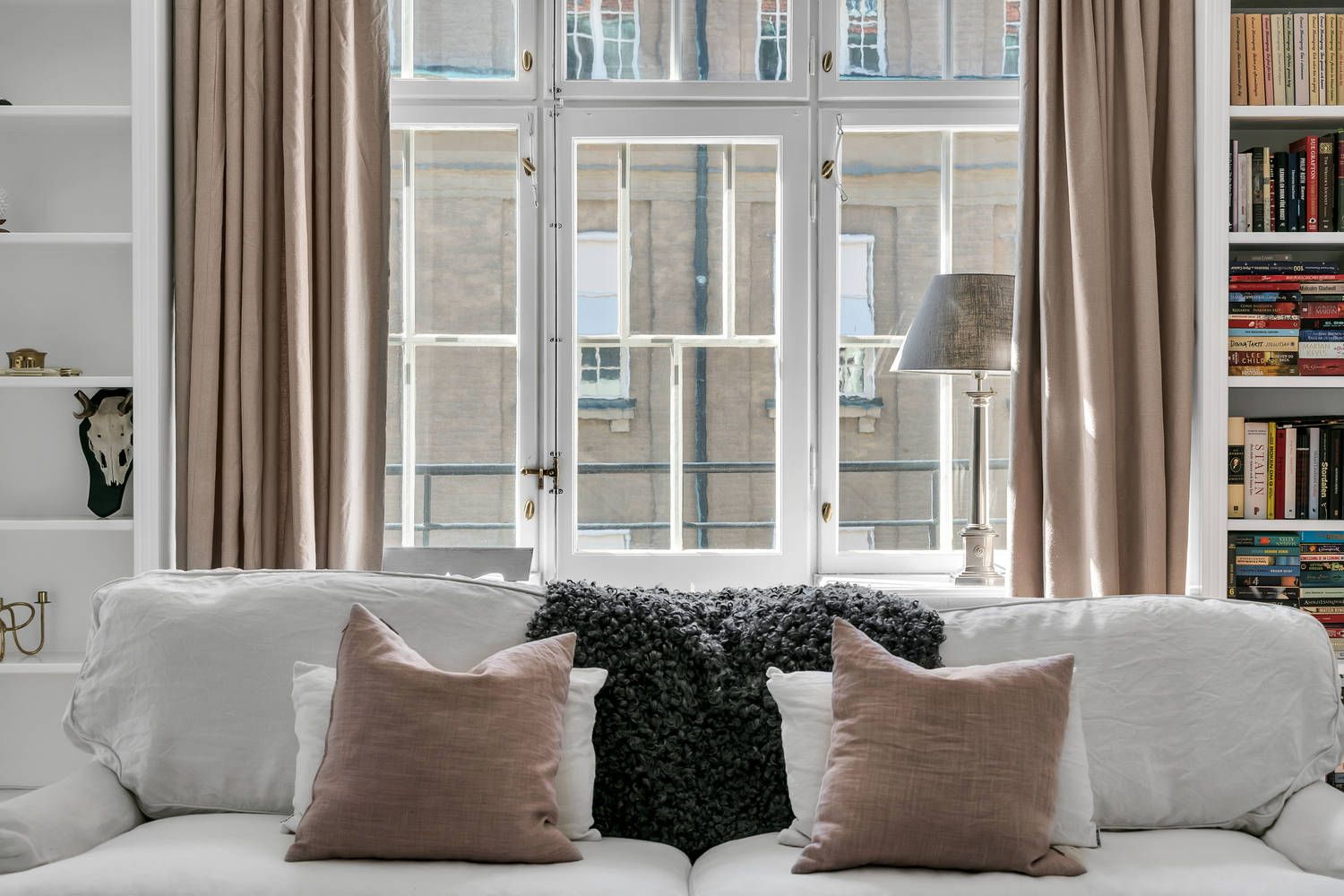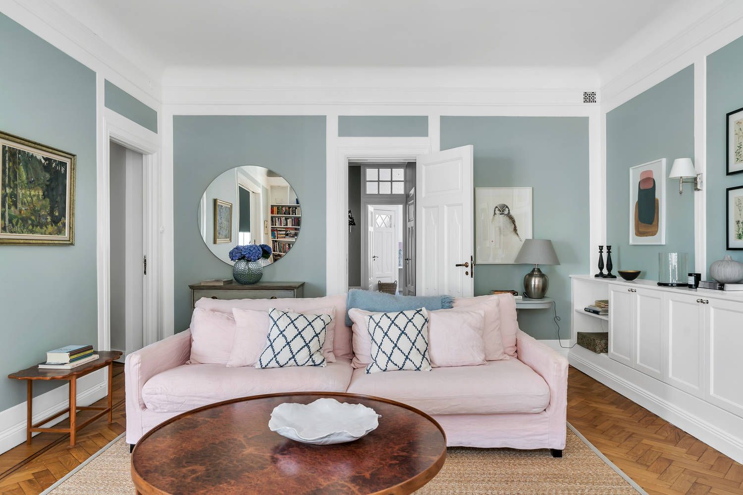 This optimally planned four-room apartment is located in a bright and quietly located property built in 1913 in a national romantic parade style. The floor captures most of what can be desired by an accommodation from the era, such as large airy living rooms, fantastic sash windows, open kitchen and three bedrooms located towards the quiet courtyard. In addition to this, the floor has two balconies, one facing the street and one facing the courtyard as well as a beautiful bay window in the large kitchen and access to a balcony to the west from the living room. A careful renovation, which has retained the floor’s original details, creates charm and atmosphere tastefully combined with a modern form and function.