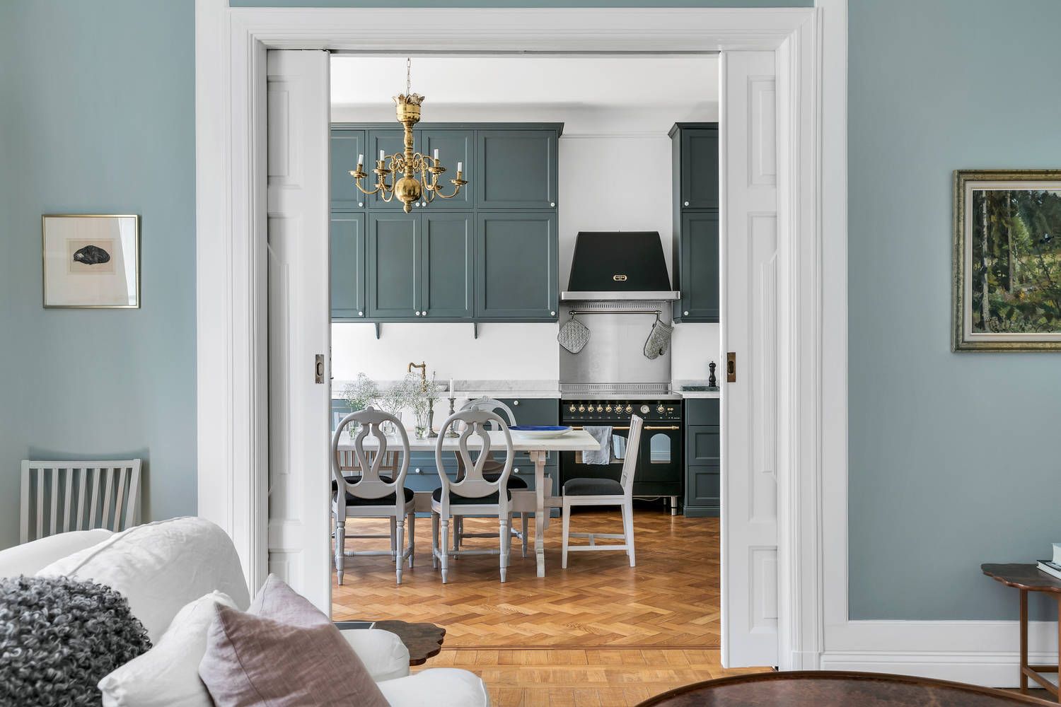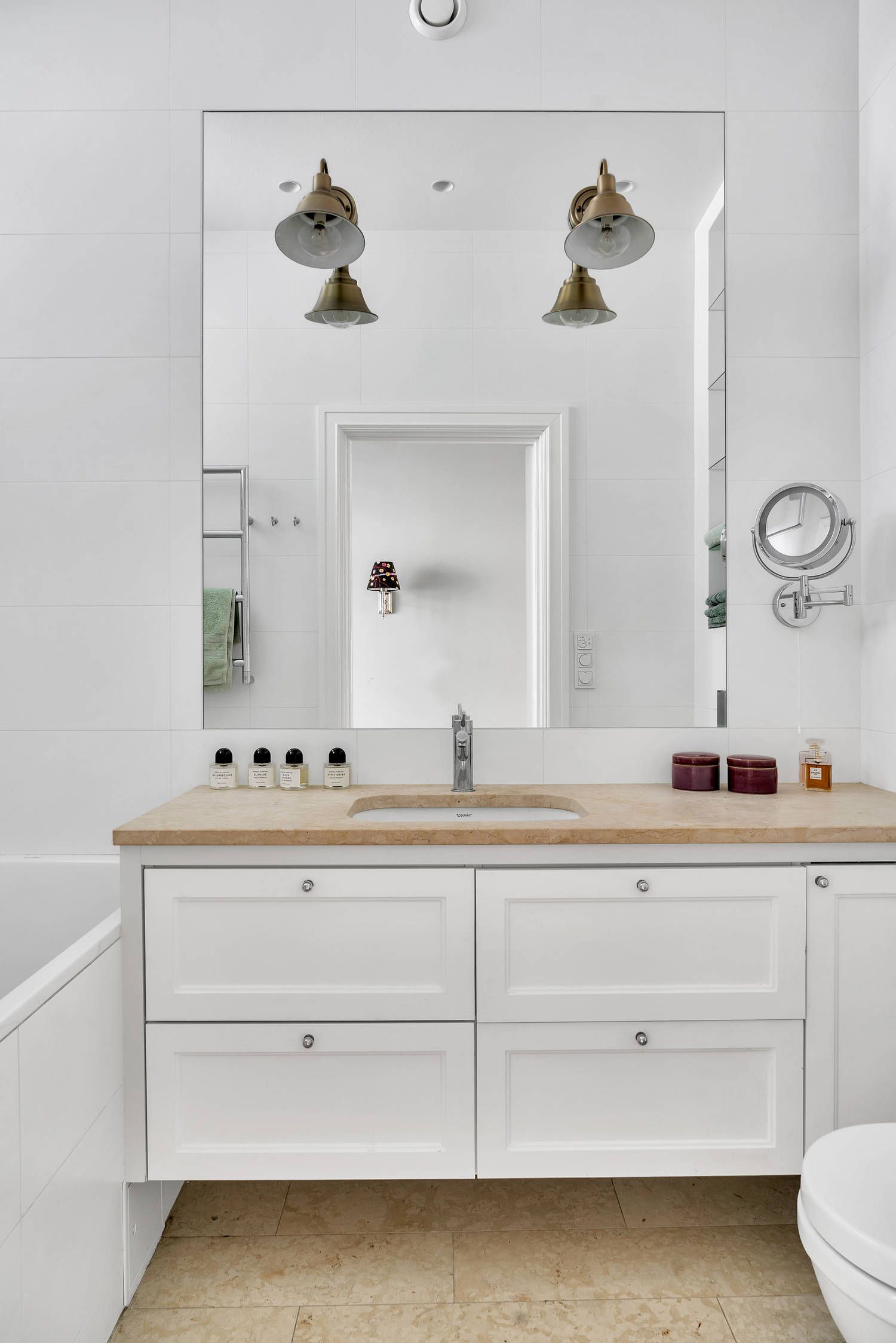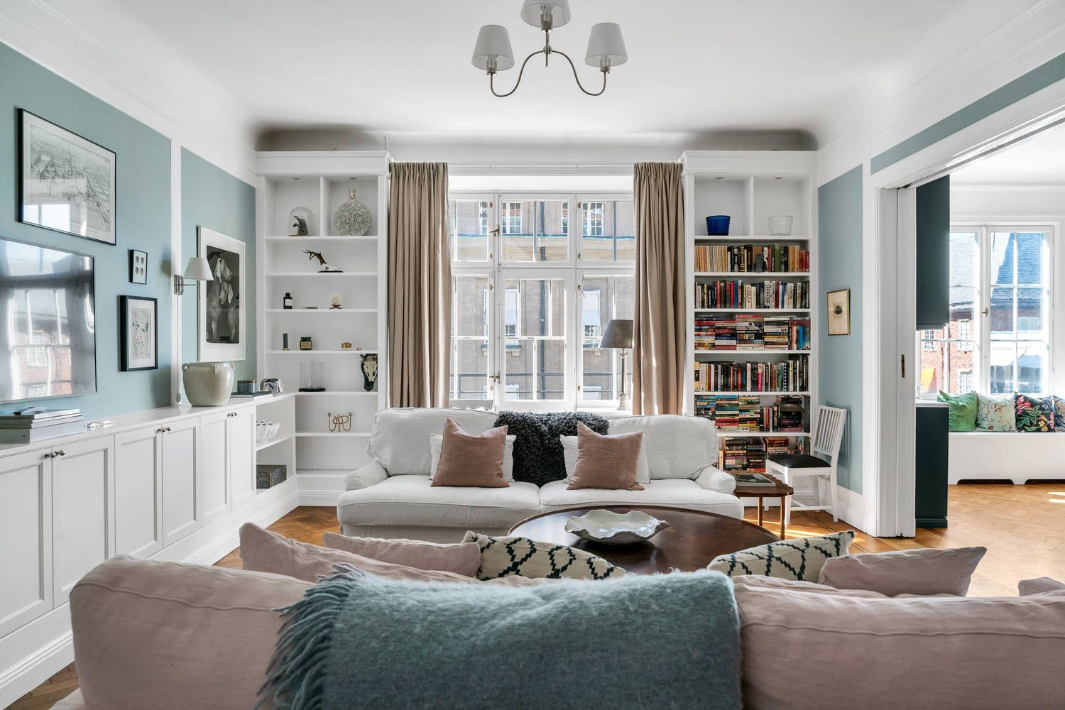 This optimally planned four-room apartment is located in a bright and quietly located property built in 1913 in a national romantic parade style. The floor captures most of what can be desired by an accommodation from the era, such as large airy living rooms, fantastic sash windows, open kitchen and three bedrooms located towards the quiet courtyard. In addition to this, the floor has two balconies, one facing the street and one facing the courtyard as well as a beautiful bay window in the large kitchen and access to a balcony to the west from the living room. A careful renovation, which has retained the floor’s original details, creates charm and atmosphere tastefully combined with a modern form and function.