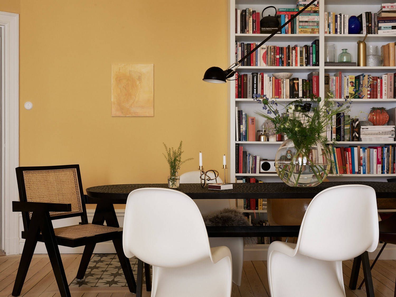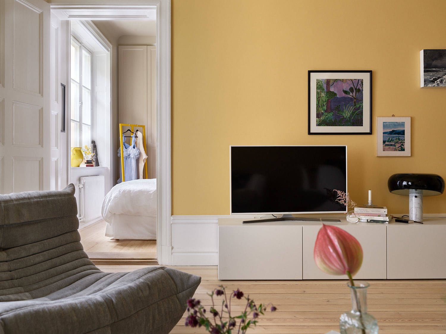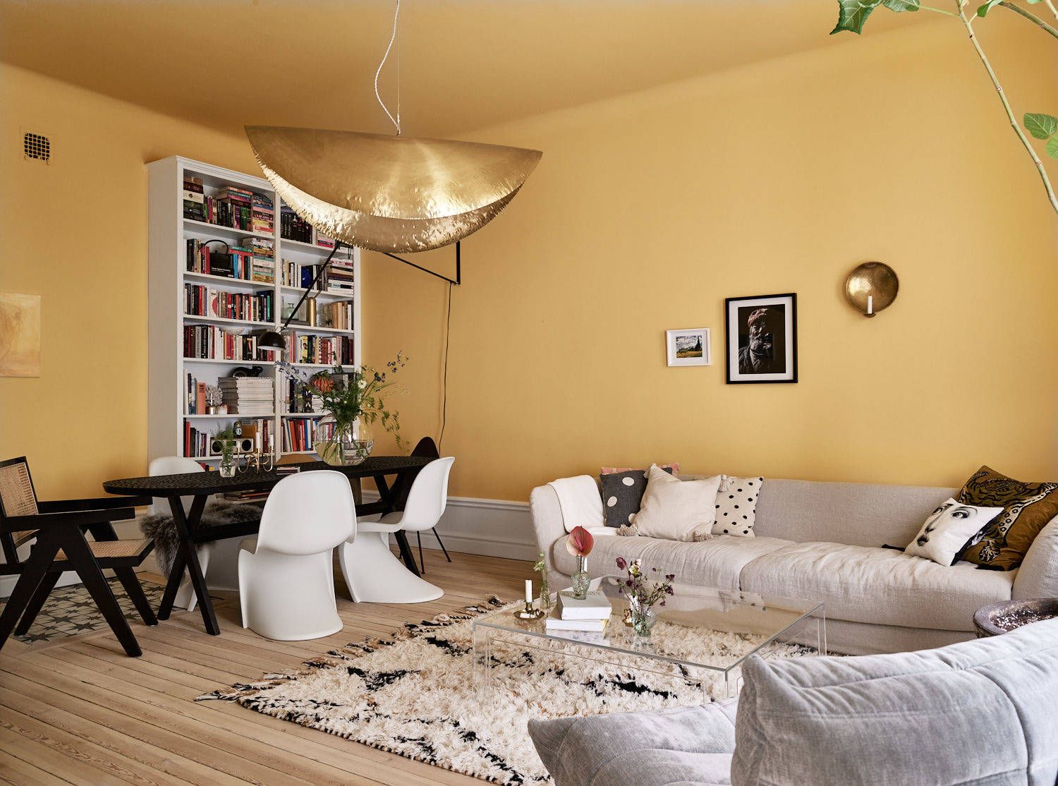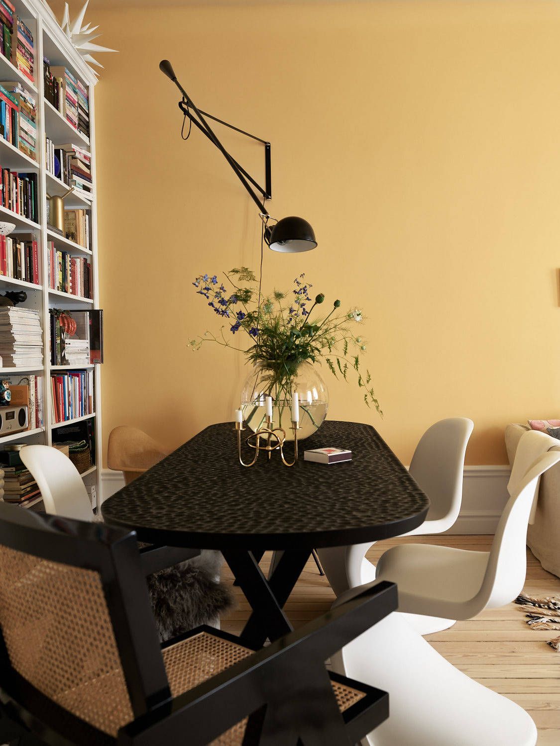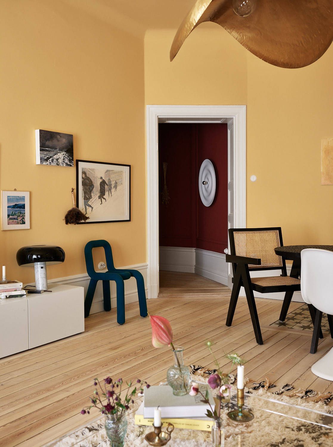 Choosing a bright yellow shade for the walls and ceiling of the living room is quite unexpected for a Scandinavian designer. We must say though that it looks very interesting as a background colour for beautiful furniture and objects. You can’t help noticing that there are also some more bold colors used for the rest of the apartment which make it one of its kind. Enjoy it!!!!