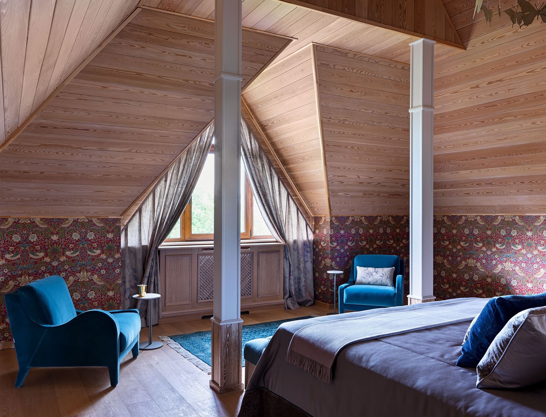 A special place in the interior is reserved for paintings and graphics, original lamps, wallpaper and high-quality textiles. There is not a single random object in this house, all the details are carefully selected, which gives the interior a unique character. The hostess herself calls its style “luxurious simplicity.”