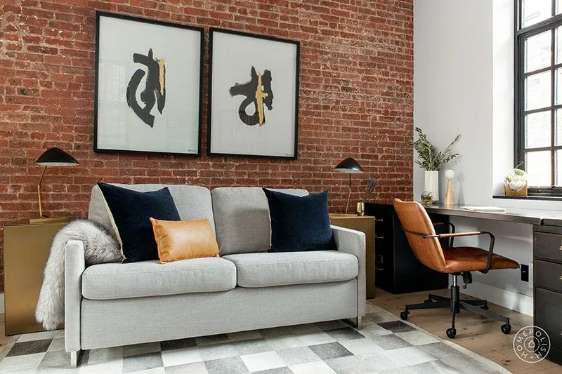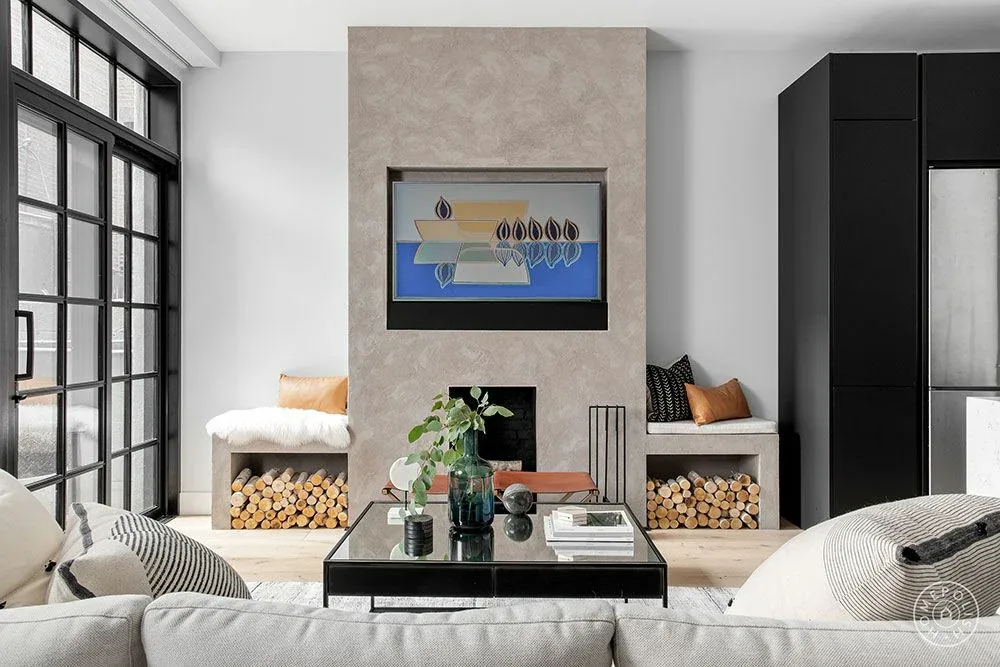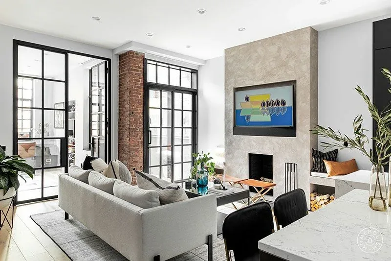 The owners of this apartment in New York’s East Village asked the designer Ashlie Broderic to combine minimalism and industrial touches in the interiors of their home. The space turned out to be very geometric: starting from square windows and a fireplace zone and ending with cushion prints and slender rows of logs. Ashlie tried to soften such severity with the help of a very pleasant color scheme: milky, beige and light gray in combination with black and peach-red accents. One of these accents were brick walls that refer us to the loft style. The bedroom also turned out to be beautiful and delicate – a real corner of harmony and coziness.