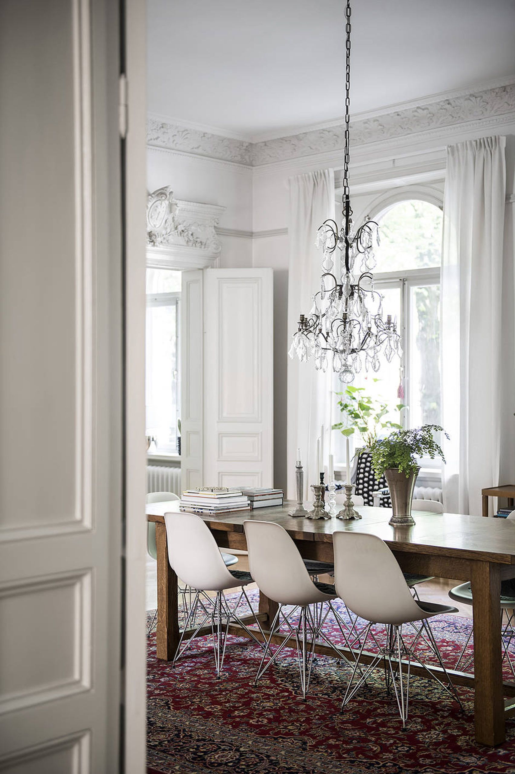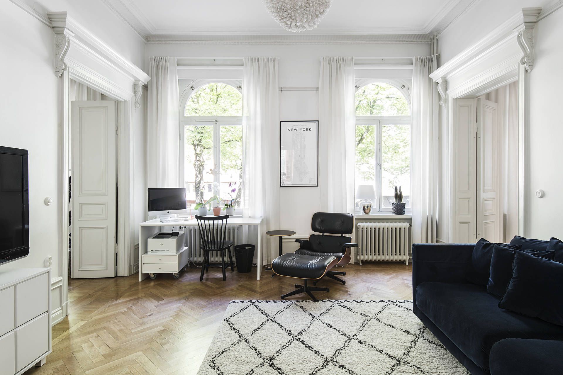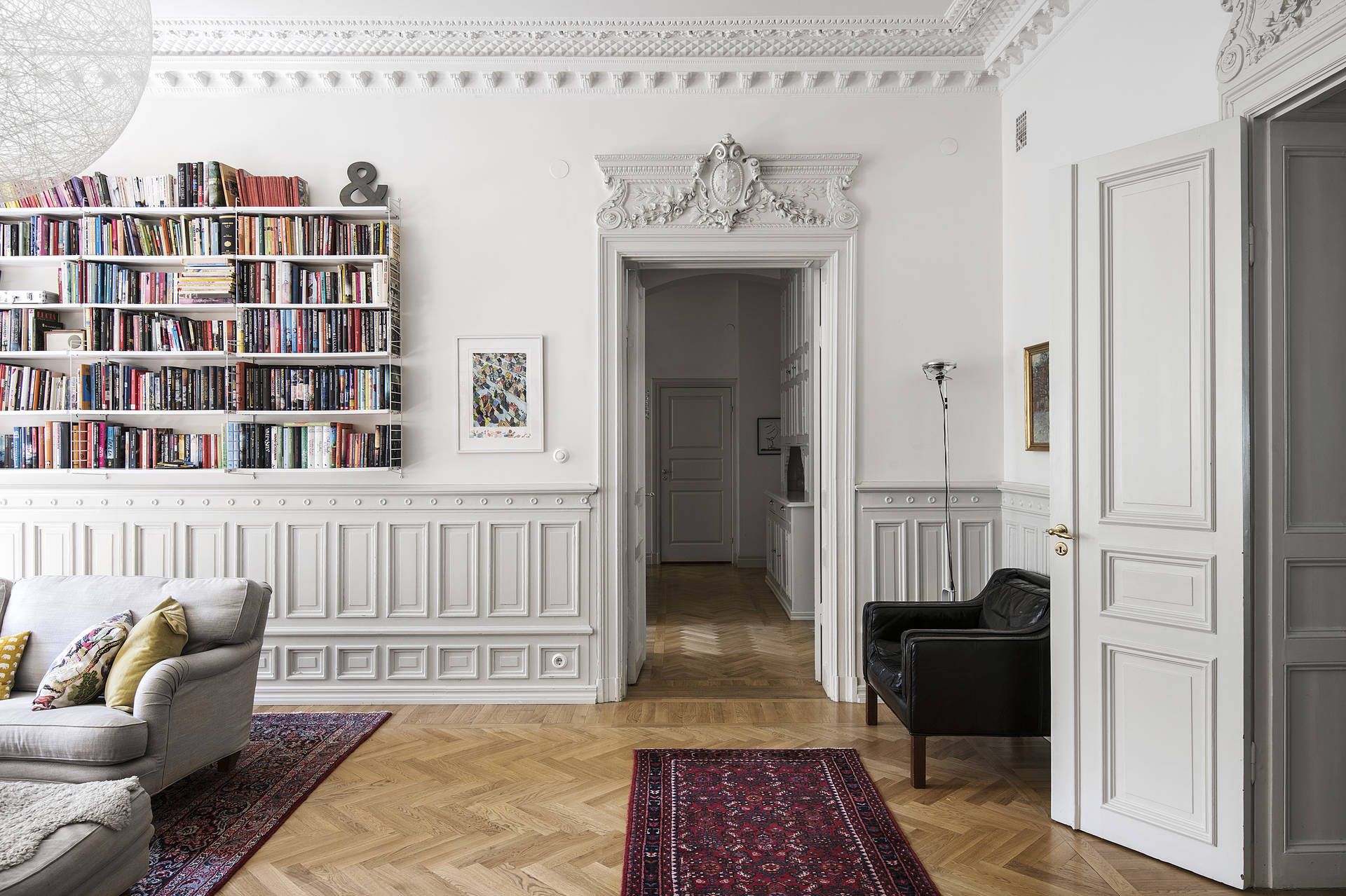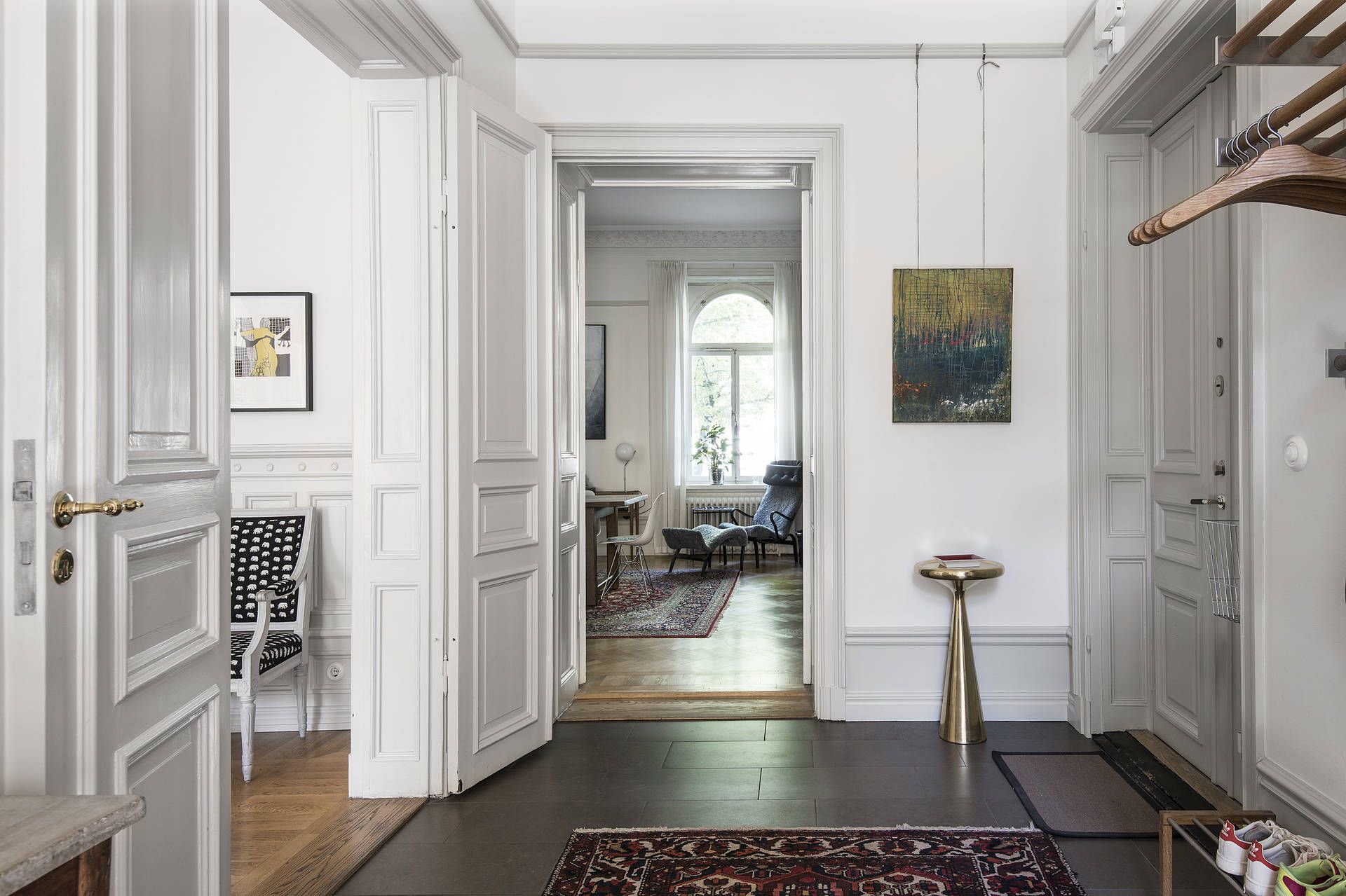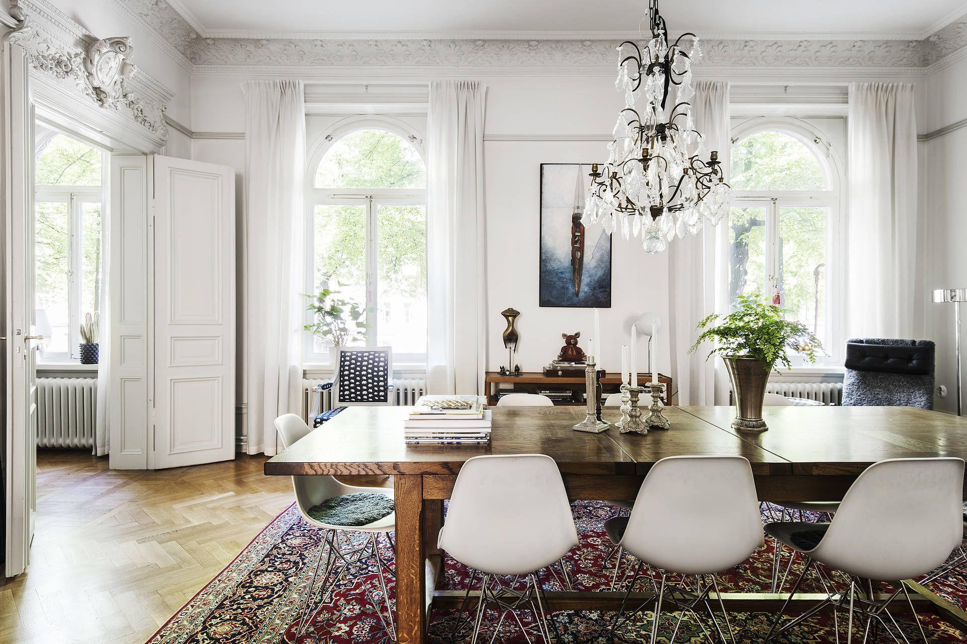 Striking family apartment of 213 sqm in a beautiful corner property in 1888 of Nordic design . Here you are met by several well-preserved original details such as ornate ceiling stucco, chest panels and mirrored double doors with magnificent door tops. This extremely well-appointed floor boasts wonderful light from two directions and a very impressive ceiling height. Have a look!!!!