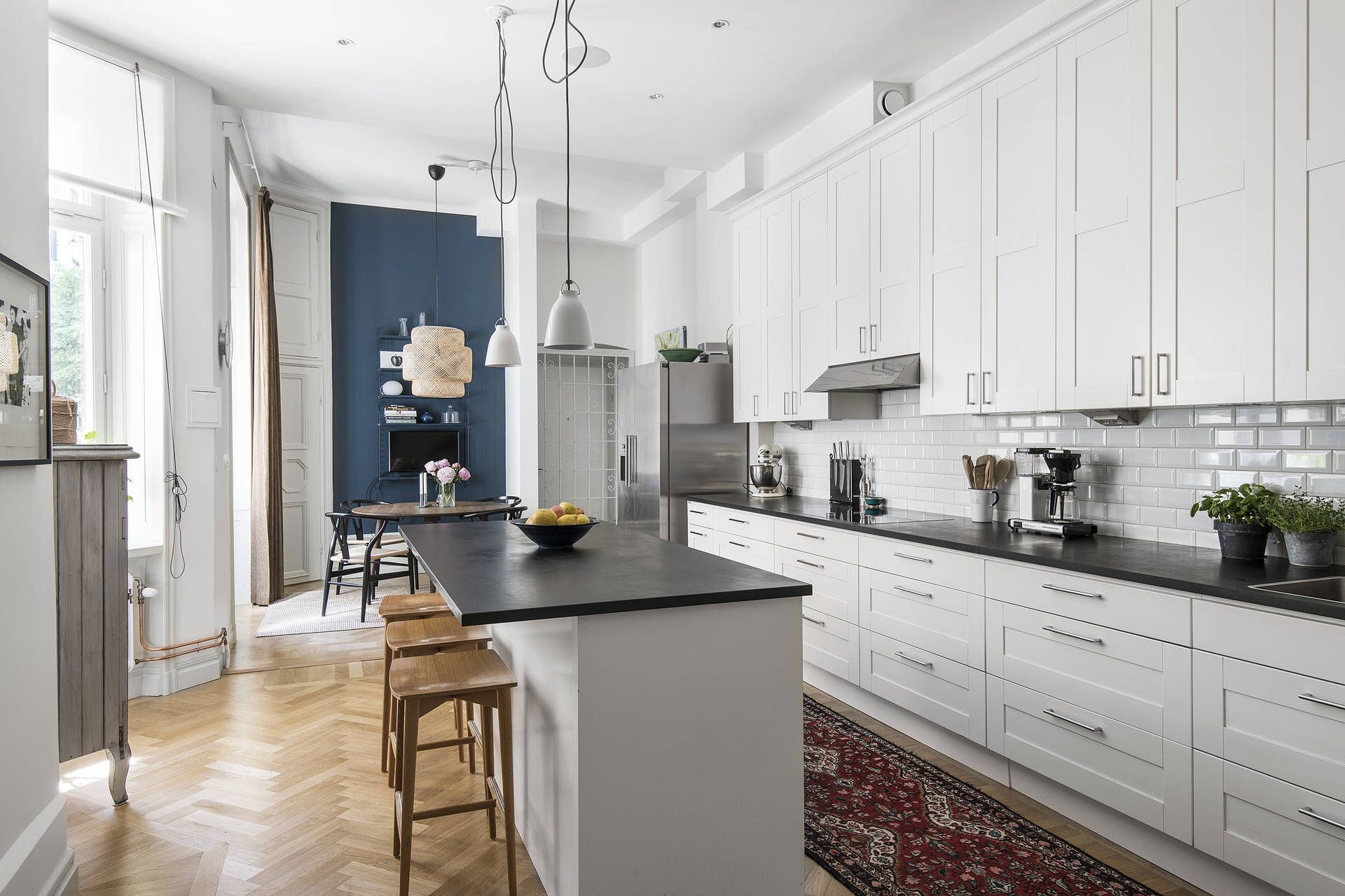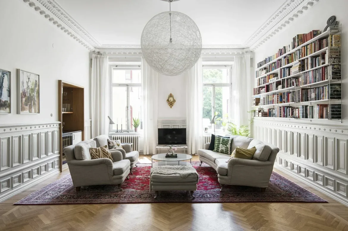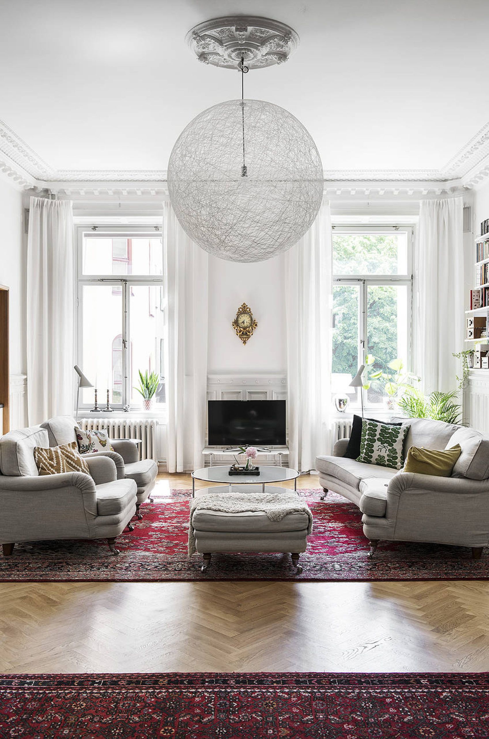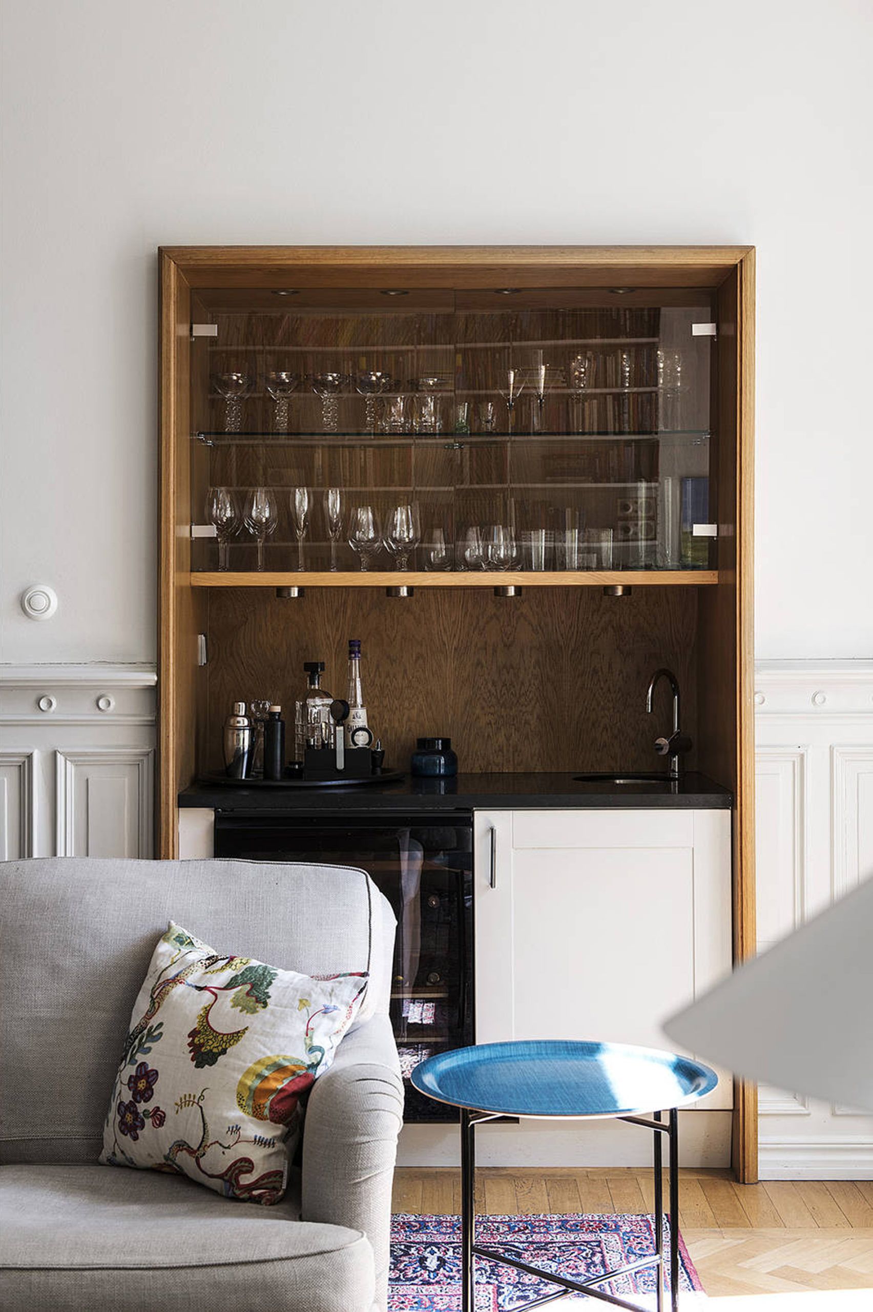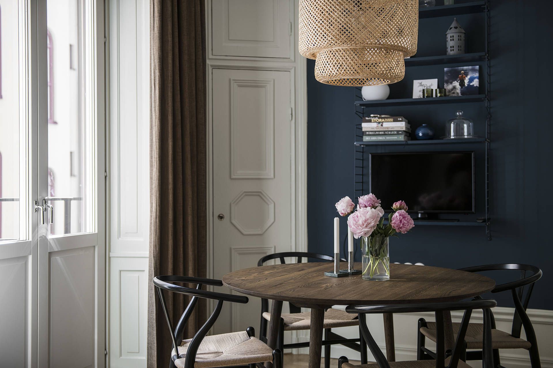Striking family apartment of 213 sqm in a beautiful corner property in 1888 of Nordic design . Here you are met by several well-preserved original details such as ornate ceiling stucco, chest panels and mirrored double doors with magnificent door tops. This extremely well-appointed floor boasts wonderful light from two directions and a very impressive ceiling height. Have a look!!!!
