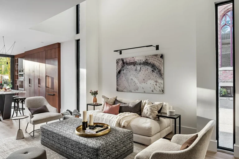 Located in the heart of flourishing Roncesvalles in Toronto’s beloved West End, Sorauren 118 by Ancerl Studio is one half of a twofold residential development for Seventy Seven Park. Where a pair of dilapidated semi-detached houses once stood now rise two unique gems of modernity. Following the narrative of a heritage barn brought back to life, the detached homes have been conceptualized to visually appear as one single volume defined by its traditional triangular architecture. Only from up close will the observer notice a crisp breakpoint between the two properties. With a facade featuring heritage yellow-toned brick, corten steel accents and expansive industrial window frames, the home represents a new generation of contemporary houses. Nostalgic yet modern in its primary form, Sorauren 118 brightens the neighbourhood and lightens the hearts of passers-by and guests alike. Featuring an immersive layout and soaring triple-height open volumes, the property shines as an impressive…