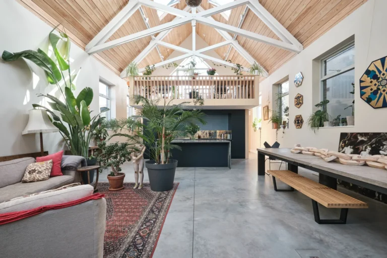 The aptly named Utopia house by Aucoot is a unique 1832 square foot haven in one of south east London’s liveliest spots, Deptford. This three-bedroom, two-bathroom detached property has all the charm you would expect from an ex-Mission hall dating back to the turn of the last century: vaulted ceilings, exposed timber trusses and an abundance of space and light. With a generous roof terrace offering a private, low-maintenance garden and a stunning workspace, it is a perfect urban hideaway with great links to the City and the beautiful green spaces of south London. The original building was constructed in 1906 as a memorial to philanthropist Joseph Mead. But in 2018 it underwent a sympathetic renovation with architect Alex Nikjoo in collaboration with its current owners – renowned artists – carefully stripping away years of modifications to reveal the original features in all their glory. Photography : Aucoot See also…