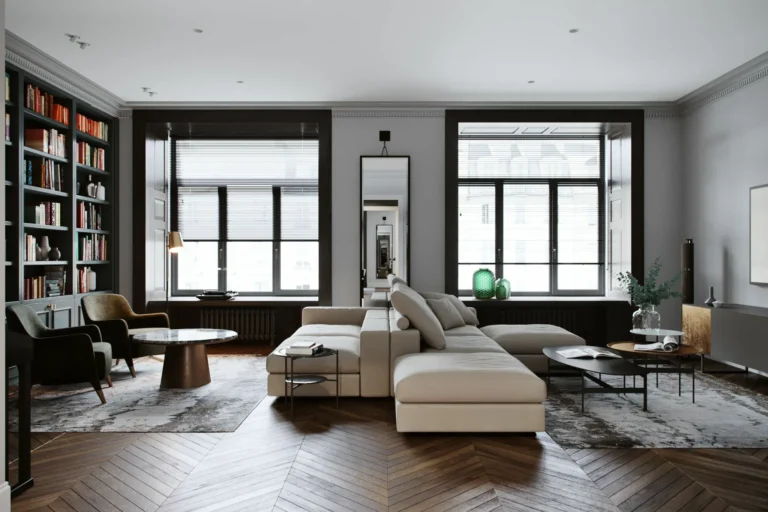 Initially, Aiya Design Studio customers bought an apartment of 178 sq.m., but later decided that more space was needed for an active and expanding family, and bought a neighboring apartment. The studio’s task was to combine the areas of two apartments and develop a planning solution with division into functional zones. Their customers, a young couple, work hard, travel, play active sports, and all tasks related to interior design and implementation were entrusted to the studio. An obligatory wish was to create a private area for parents, in a sense, an “apartment in an apartment” with a master bedroom, a dressing room, a bathroom, as well as a small living room and a gym – the owner of the apartment is professionally engaged in cycling. By the way, on the walls there will be photographs of several of the already conquered tracks, photographs by Michael Blann . See also :https://house-diaries.com/tishinsky-per-an-eclectic-apartment-in-blue-and-grey-tones/