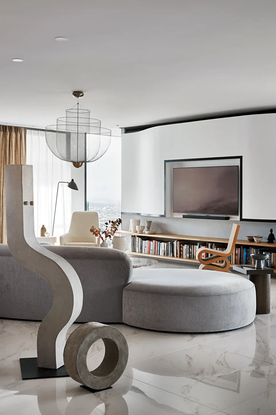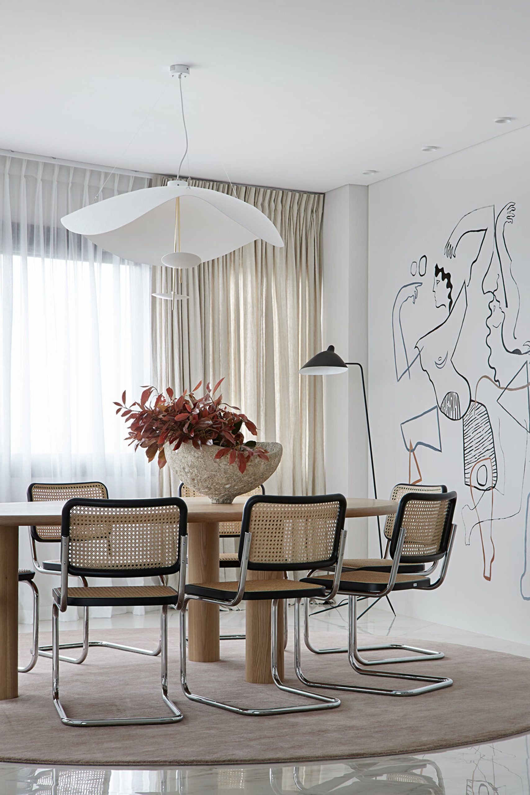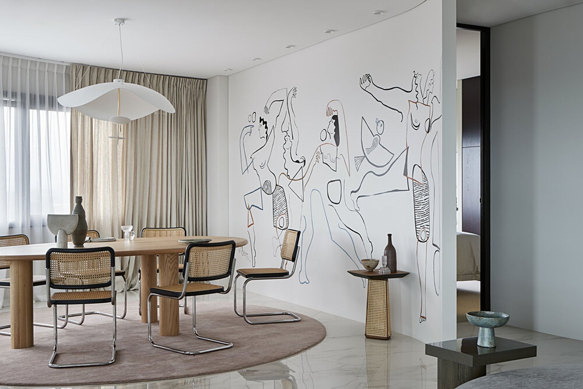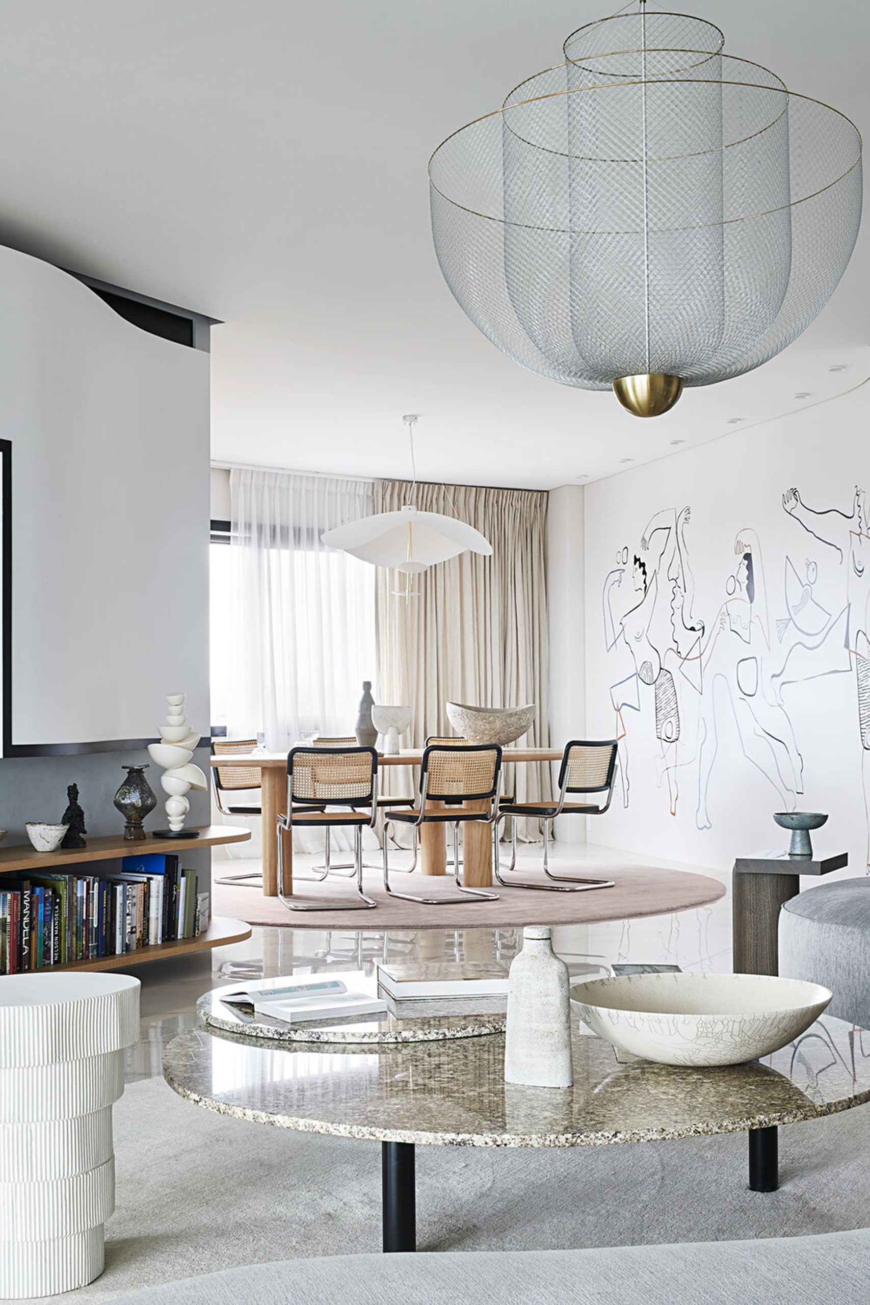 Avian Apartment is a home of connected balance, both within its encompassing walls and to the architectural intent that houses them. From its curated contents to the custom wall murals by LA artist Jessalyn Brooks called ‘The Avians’ (in refence to the outlook over the city skyline) a sense of balance prevails. Ali Holgar Interior Design has brought both liveliness and calm to the space and, through an understanding and appreciation of its architectural context, has uncovered the beauty within.