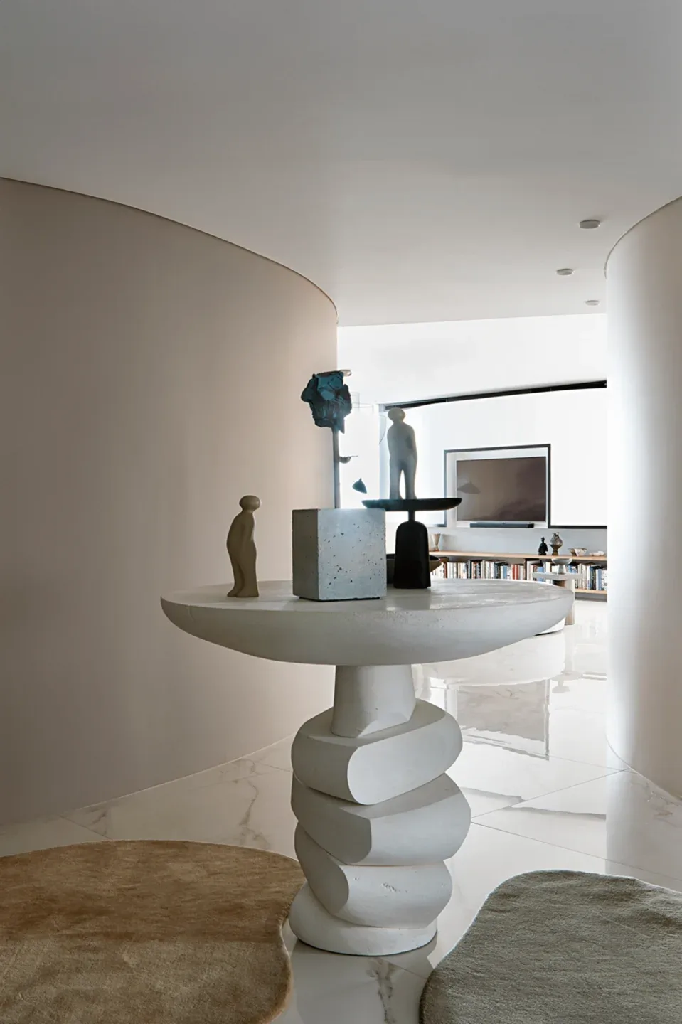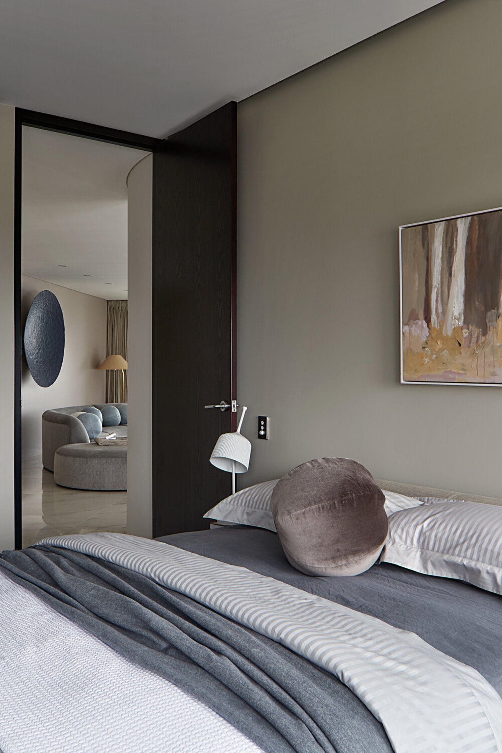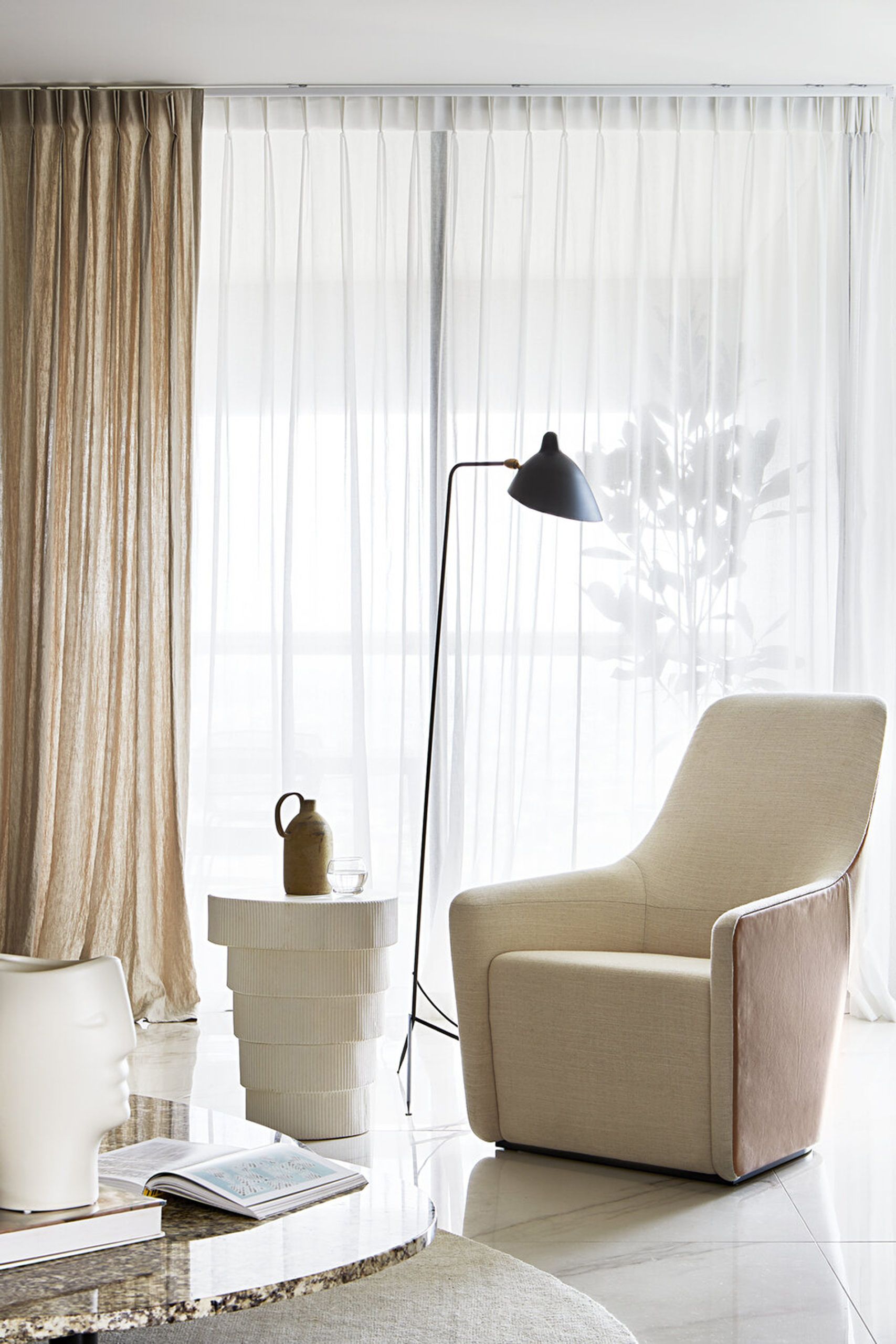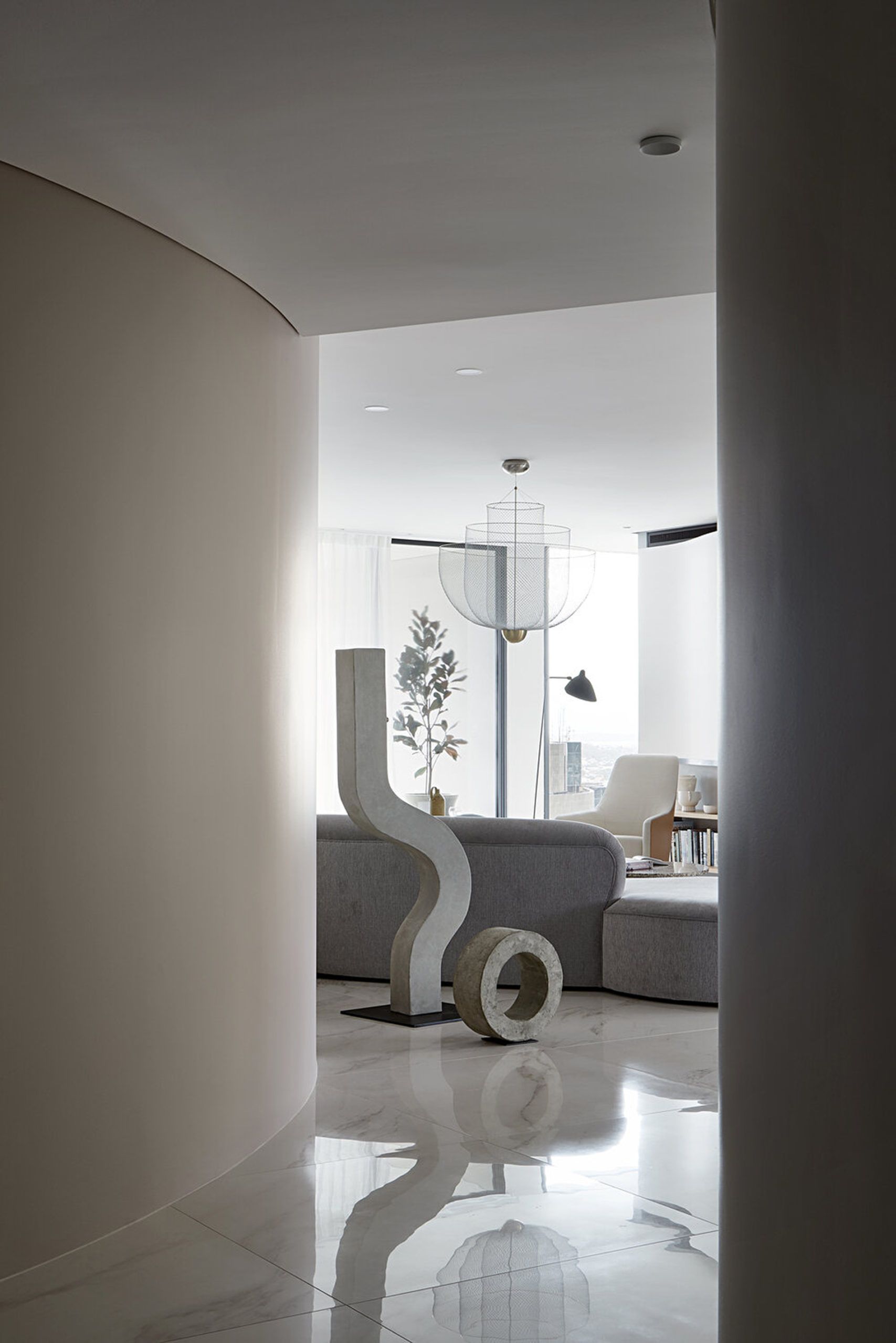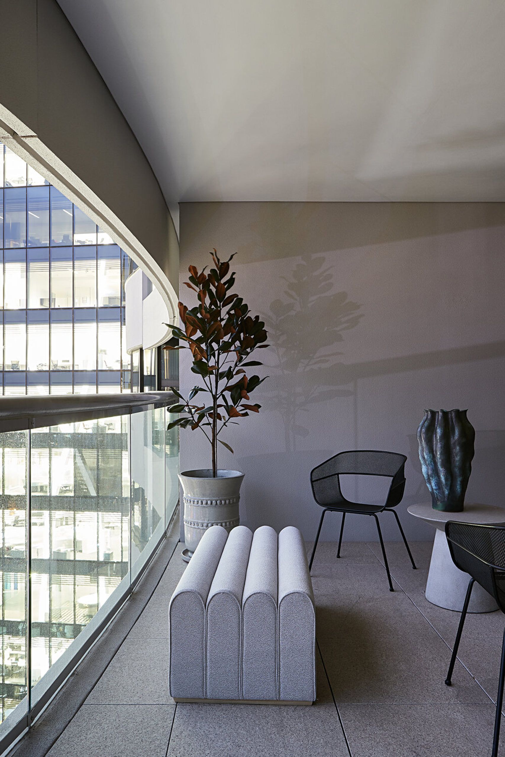 This project by Alicia Holgar involved the refurbishment and redecoration of a private apartment in Brisbane City. Located within an iconic Harry Seidler building, the refresh sought to extend and evolve fluid form and function with a European aesthetic, Australian ethic and art as an integrated expression of ingenuity. Echoing Seidler’s sentiments within the architecture, form & function evolved through a play on curves, cantilevers, materiality & art as an integrated expression of ingenuity.