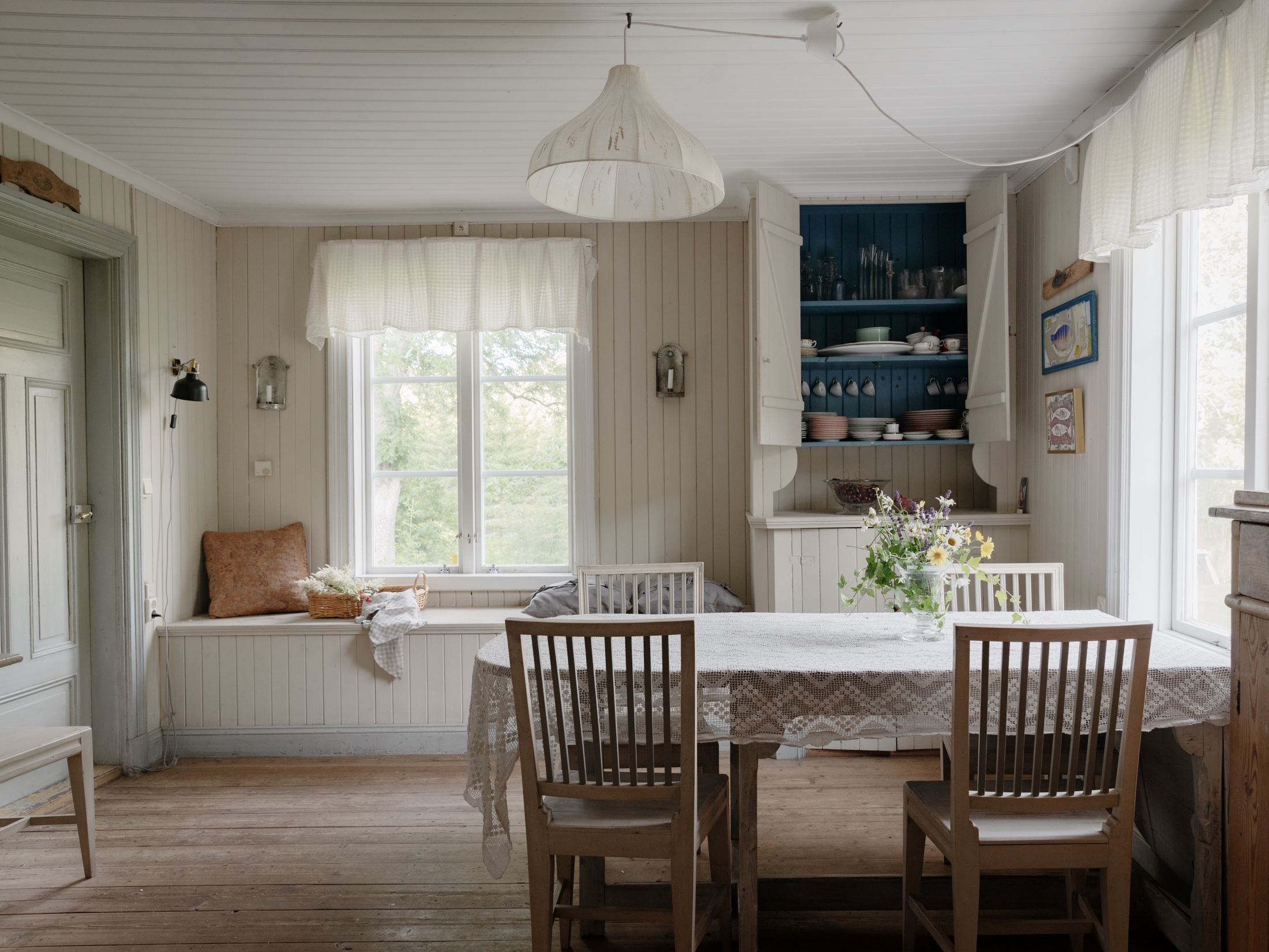 Bretorp Farm is located in a living landscape, surrounded by forests and meadows, winding gravel roads, fields and small lakes. Here there is peace, quiet and freedom. The farm is located as a separate place on earth in an undisturbed location and on a small hill with a cozy and natural garden. The property dates back to the 17th century and was originally a crown croft under Gripsholm Castle. Today it is a beloved home for a family that has built up and cared for it tenderly for almost 30 years. During these years, the farm has functioned both as a summer place and permanent residence. In addition to the major renovations and extensions, the buildings have been continuously maintained over the years. Everything has been done with a loving hand and respect for the origin. This is the home of genuine materials and recycling, created with the right feeling that not everyone is privileged to have and that makes a home genuine and undisguised. Here is a strong soul, noticeable down to the smallest detail.