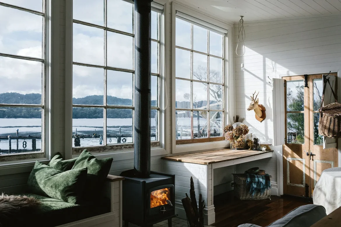 Sailor Sarah Andrews found and restored this cottage in Lettes Bay on Tasmania’s West Coast. Overlooking the water it’s a perfect serene hideaway filled with cozy corners and vintage objects. A traditional Tasmanian coastal ‘shack’ has been transformed into a soulful, storied waterfront retreat, perfect for cocooning couples or solo escapees. An extraordinary attention to detail is matched by an exquisite, painterly, and fabulously restorative setting on the wild west coast.The cottage is mainly wood from the inside which immediately gives a warm atmosphere and it’s decorated in neutral tones with the occasional green and mustard color touch. It’s a simple cottage but because it’s decorated so lovely it’s looks like the perfect place to unwind from daily life And the good news is that you can as well, rent it through the airbnb platform here!!!!