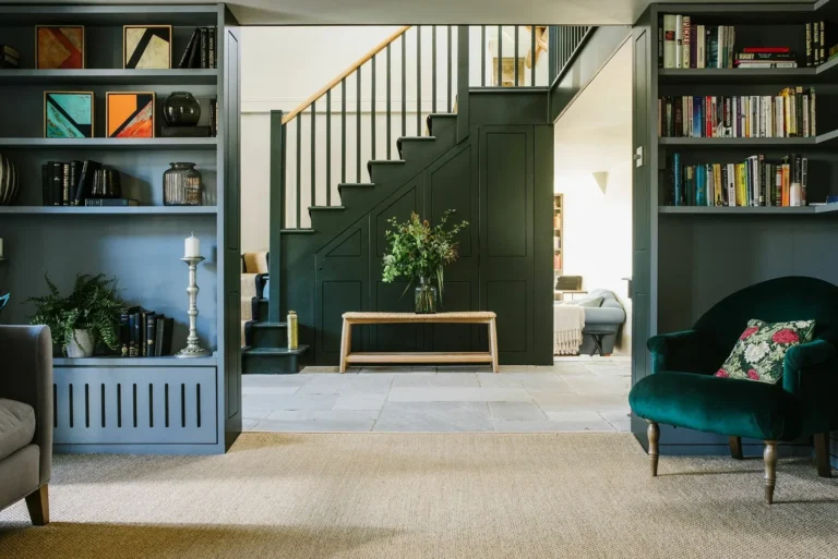 From a 1950s property with limited architectural character, Ham Interiors undertook this full design, build and interior design project to create a modern country home. Open-plan living spaces with pitched ceilings are given warmth with an eclectic collection of antiques and specially commissioned large-scale artworks, while reclaimed sinks and fireplaces were sourced on buying trips to Belgium. The studio’s signature shiplap boarded ceilings, textural flooring, bold pops of colour and handcrafted furniture give this country home an established elegance. They undertook this project alongside their partner company, Tom House a bespoke property development practice.
