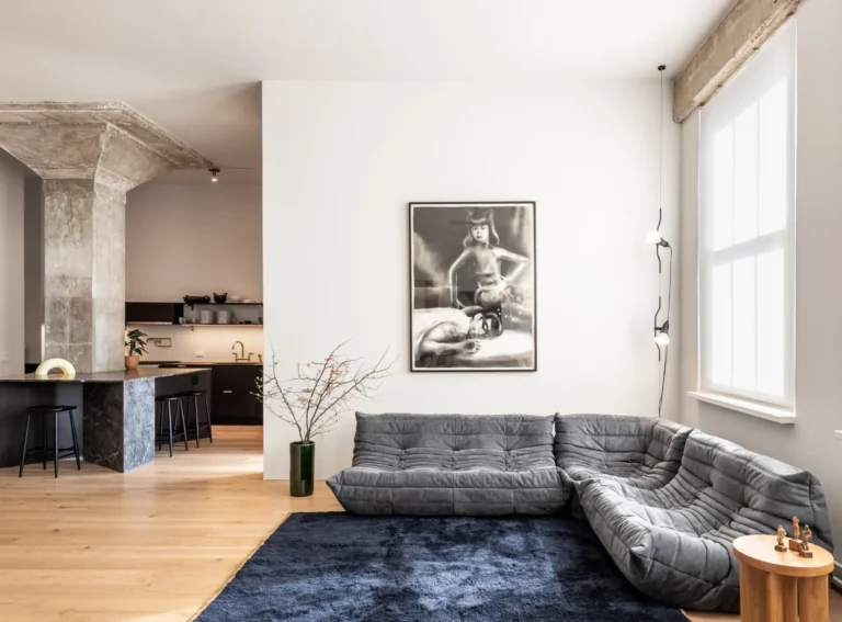 This 3 bedroom flat renovation within a prestigious mansion by block by Astrain Scheldt Architects looked to open up the cellular reception spaces and enhance connectivity with the kitchen and hallway. Sliding glazed fire rated doors were used to enhance views and natural light within the property. Fairly intensive structural alterations were required in order to accommodate the new layout, which had to go through a meticulous approvals process with the management company and block surveyor. Designers’ interior design concept for the project was based around providing a bright, contemporary backdrop for our client’s eclectic mix of fabrics, furniture and artwork. The architecture of the space needed to be simple, elegant and respectful of the original Edwardian feel to the flat. Photography : Richard Chivers See also : https://house-diaries.com/utopia-house-an-ex-mission-hall-conversion-into-an-artists-studio-and-home/