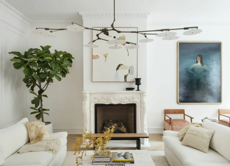 The owners of this apartment in New York’s East Village asked the designer Ashlie Broderic to combine minimalism and industrial touches in the interiors of their home. The space turned out to be very geometric: starting from square windows and a fireplace zone and ending with cushion prints and slender rows of logs. Ashlie tried to soften such severity with the help of a very pleasant color scheme: milky, beige and light gray in combination with black and peach-red accents. One of these accents were brick walls that refer us to the loft style. The bedroom also turned out to be beautiful and delicate – a real corner of harmony and coziness.