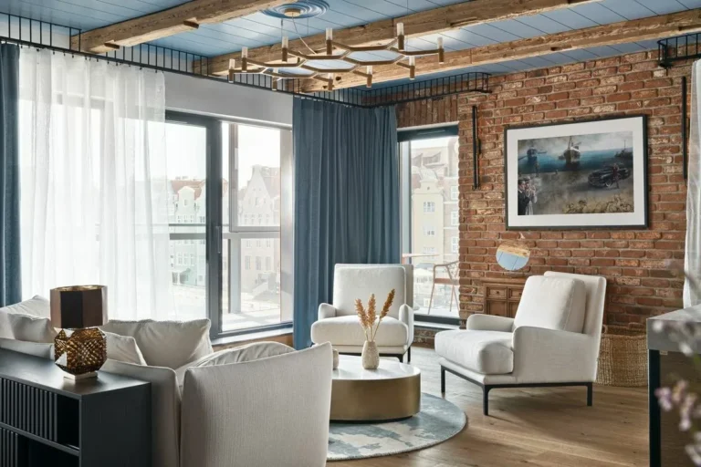 See a 100-meter apartment in Gdańsk, a wonderful combination of a loft style with the elegance of a metropolitan chic. The brick wall in combination with the gray, beautiful wooden furniture perfectly harmonizes with the light wooden floor. The open kitchen to the living room is conducive to family moments together. Although there is not a single real loft in the Tri-City, investors have opted for an interior inspired by post-industrial style. The investors turned out to be people full of passion, and their interests and lifestyle became an additional inspiration for the architect.The interior arrangement had to start with the modification of the functional layout proposed by the developer and adapting it to the needs of future hosts. The architect proposed several solutions, eliminating the disadvantages of the original division of the space. A narrow, underexposed corridor and a kitchen with an uncomfortable working space turned out to be unsatisfactory…