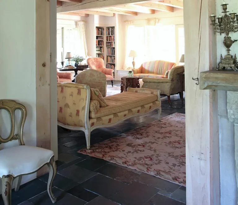 This charming country guesthouse by Susan Burns Design Studio exudes charm and the sense of escaping the everyday with a series of light-filled spaces. The bare beams and French Provençal antiques are incorporated seamlessly throughout, while the hand-painted mural in the kitchen is an eye-catching standout. Susan’s style is very vintage, yet very sophisticated and relaxed. Enjoy it!!!! See also : https://house-diaries.com/an-english-country-house-by-susan-burns/