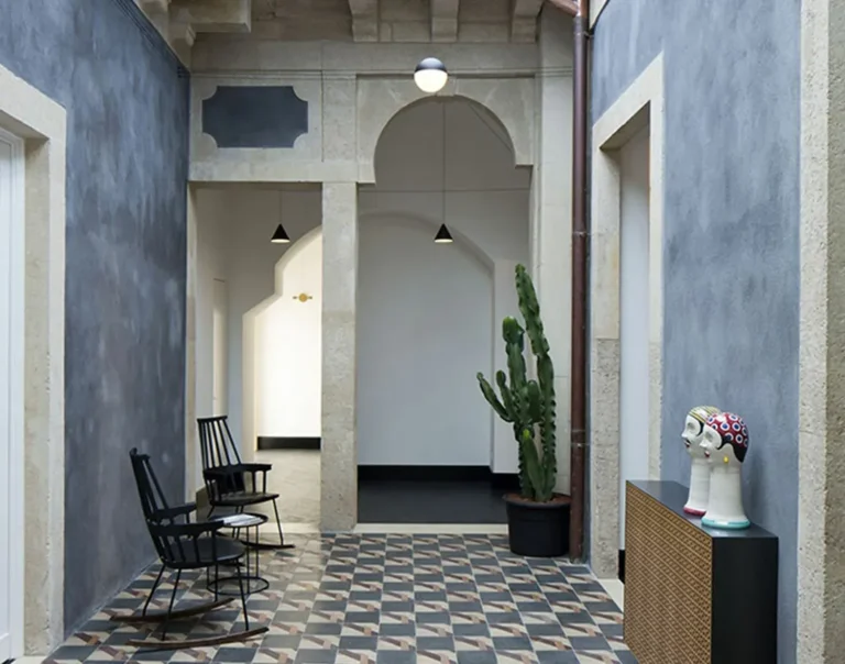 Asmundo di Gisira is located in an 18th century palace, in one of the four corners of Mazzini Square, near the Cathedral of Catania.The aim of the Studio Gum was the redevelopment and the transformation from noble residence to a special tourist accomodation, whose concept inspired by the myths and legends of the city of Catania is described through a mixture of architecture, design and memory that makes the user immerse in an authentic experience.The common areas, the reception, the breakfast room, a lounge bar and the central courtyard are inspired by the legend of Billonia, a young and beautiful florist. Here everything symbolizes the relationship between the young woman and the gardens, starting with the painting by the Catania painter Sergio Fiorentino, the decorations on the walls of the Swedish artist Daniel Egnéus or the work of Rossana Taormina from Palermo for the lounge bar. The six rooms with…