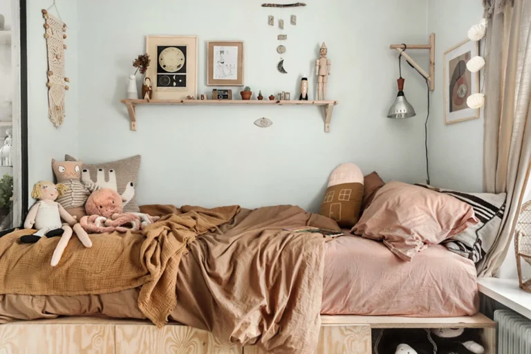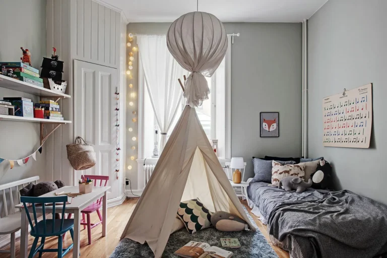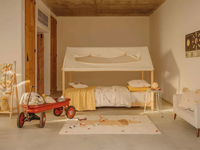 Anna Malmberg is a well-known Swedish photographer. She grew up in the north of Sweden, surrounded by forests and lakes, with ghosts and spirits as her closest neighbors.She started experimenting as a photographer at age 14, because it was the only way she had to create a bridge between fairy tales and reality,timeless fantasy and present time. It was there, where her style was born. Personally i like the totally artistic, bohemian and nonchalant style she has , with her love for earthy colours and the choice for natural, ecological materials.Her house is decorated with a monochrome palette and filled mostly with vintage pieces so her son’s room could not resist the same dreamy feeling which goes straight to our heart. https://northernsisters.se/inspiration/annamalmberg/the-doll-house/