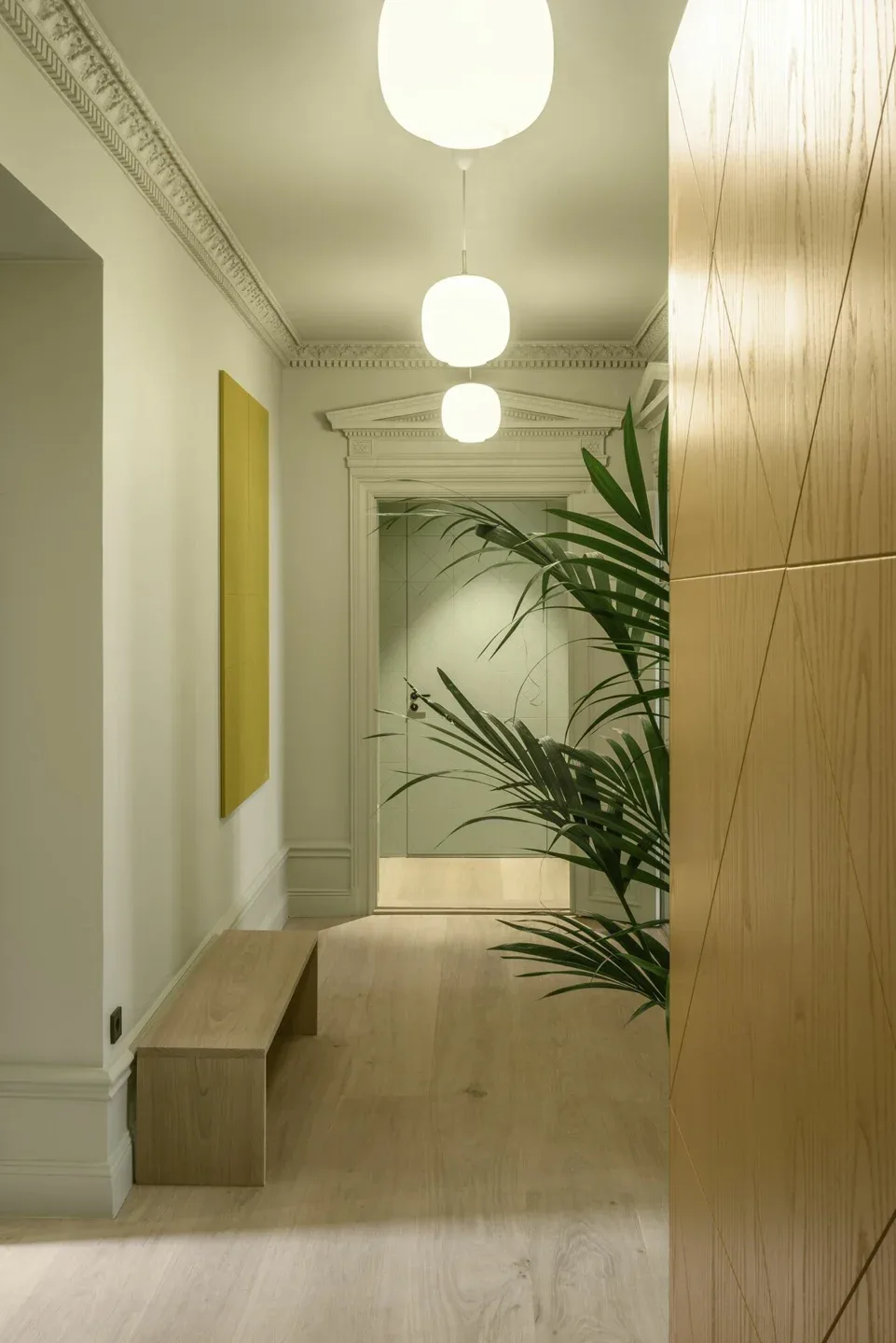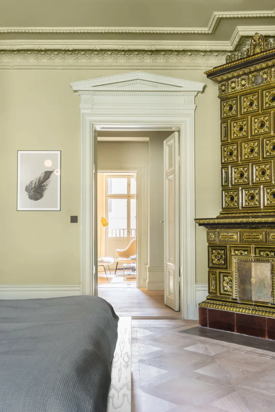 An office space – an apartment without either bathrooms, kitchen or storage – the former head office of a fashion brand in the center of Stockholm and a client that hoped to transform it into a home. Traces of the old 19th century splendour were there, but all those beautiful, old characteristics were painted in thick layers of white color with modern spotlights in all ceilings, which reinforced the feeling of an impersonal office.