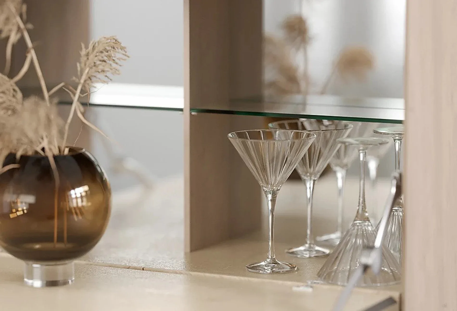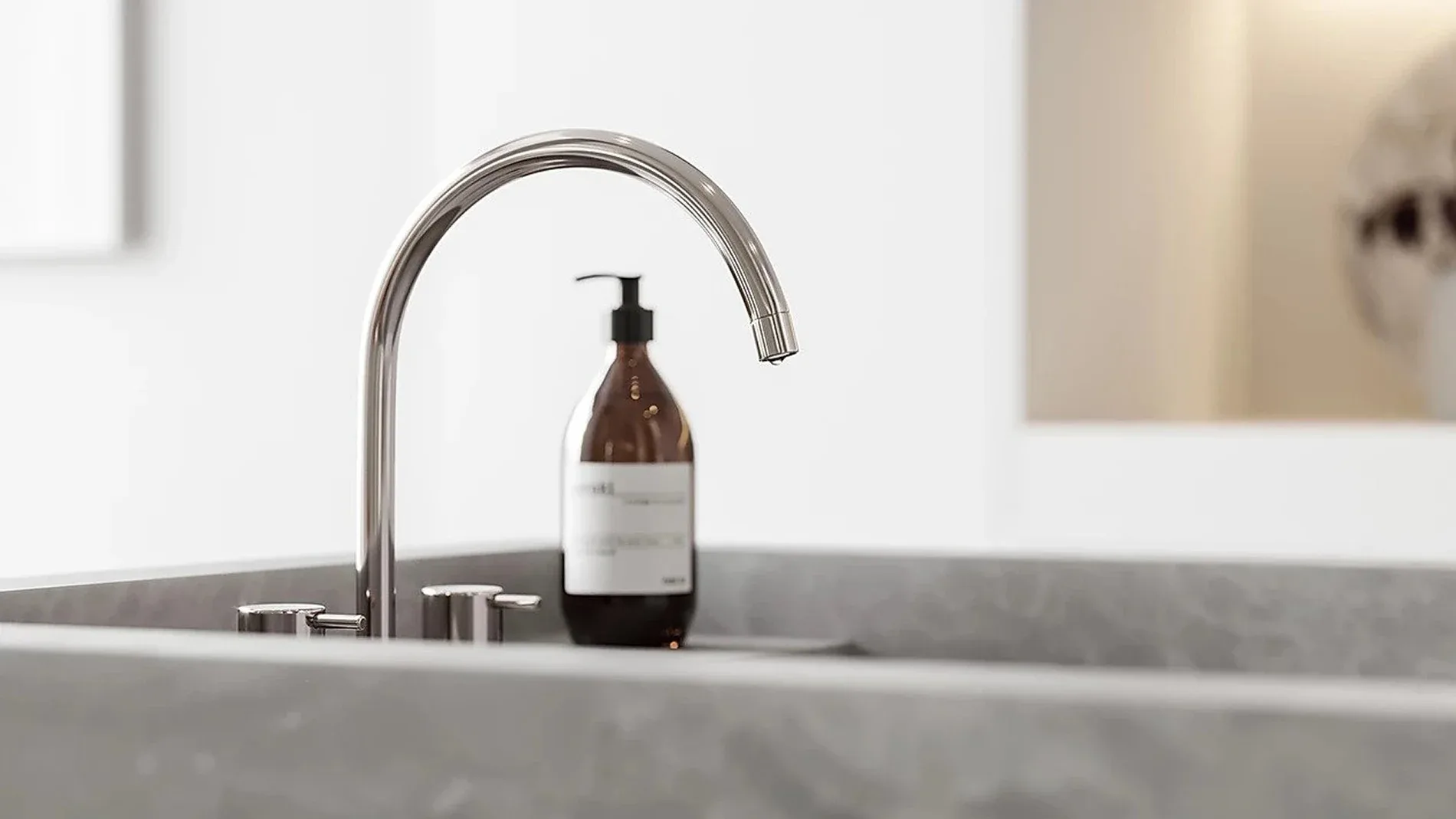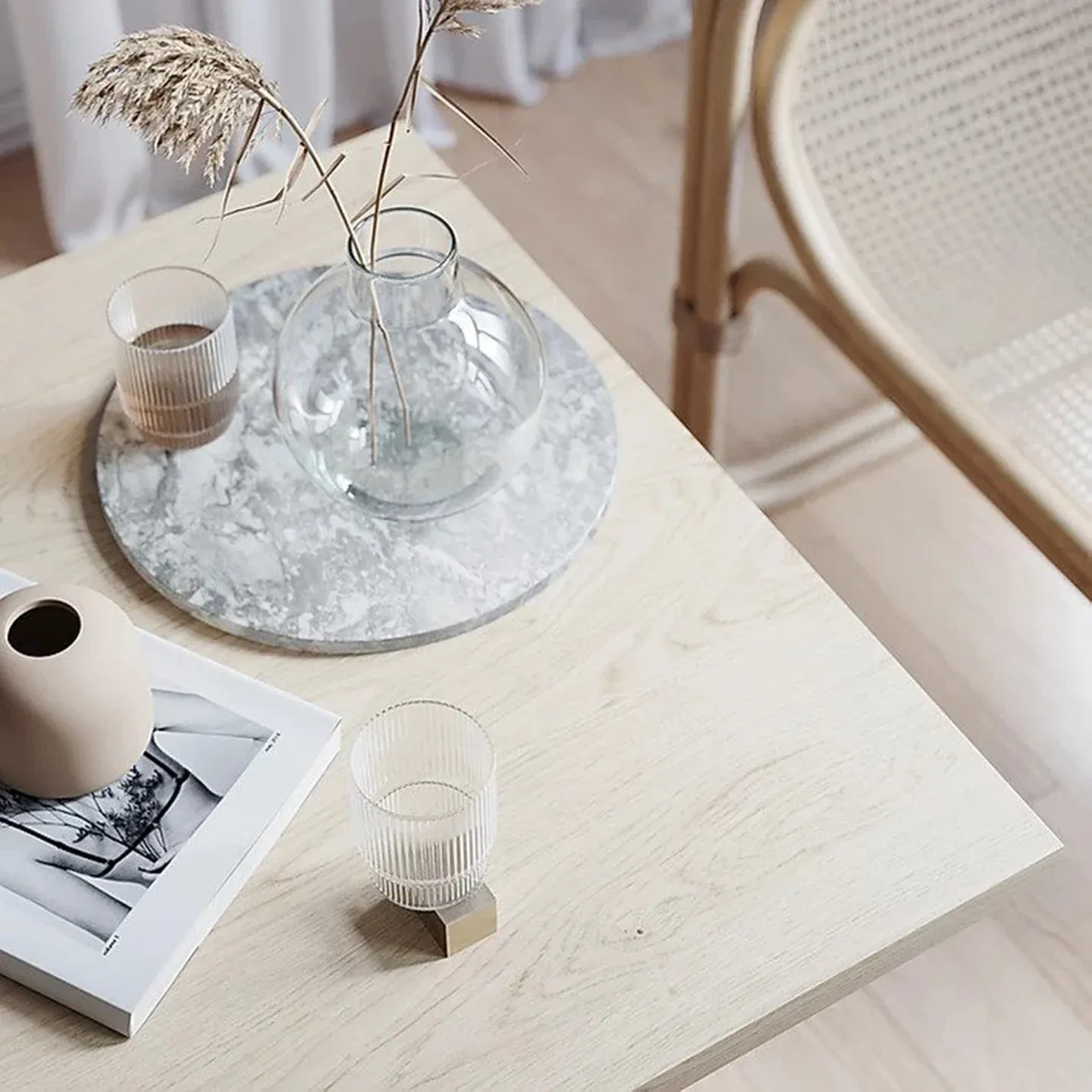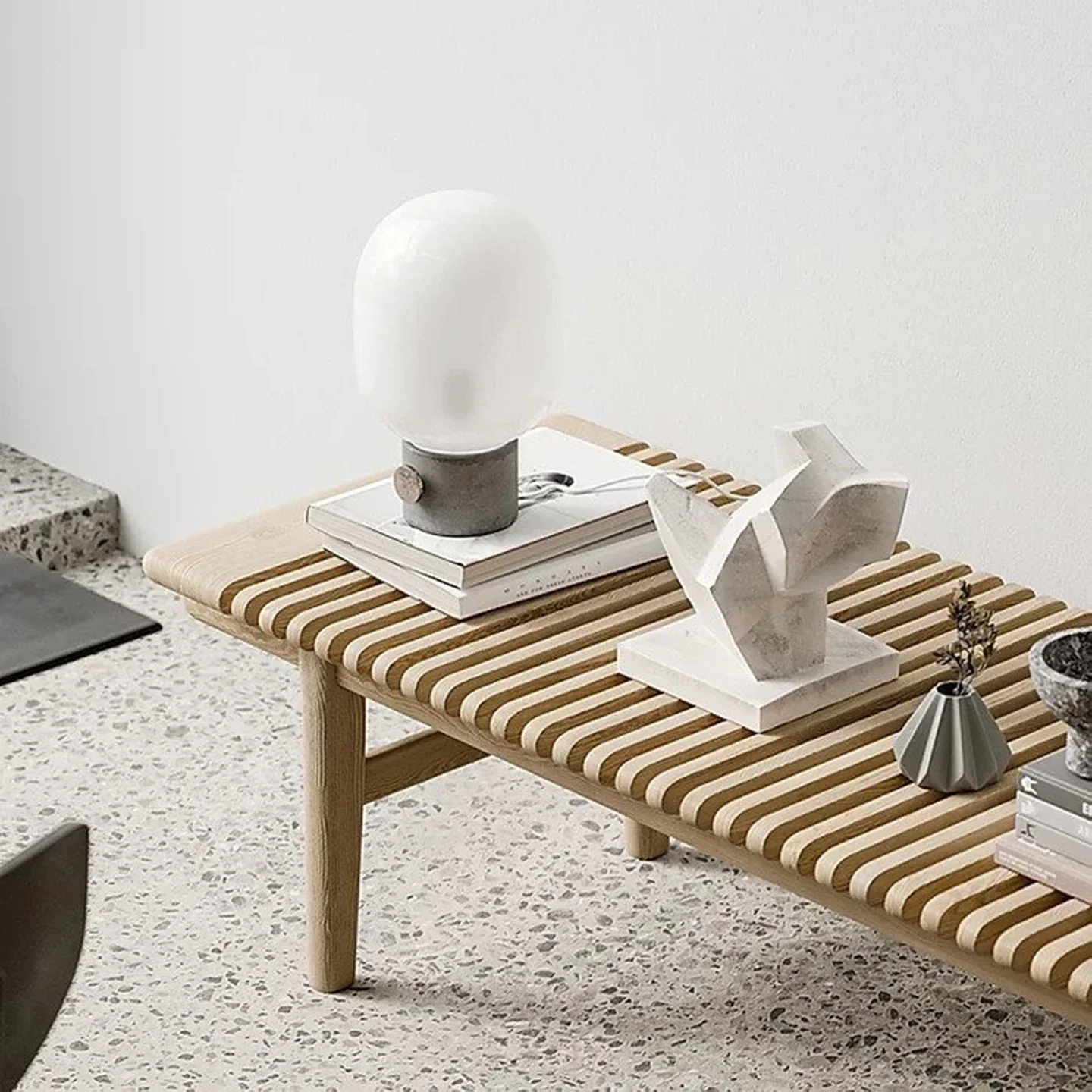 Pale interior concept residence is fluid and minimalistic, with tactile elegance emphasize on bright architectural aesthetic encompassing living, kitchen and dining room in an open space with no official dividing. The neutral Pale palette is displayed through raw materials including concrete, dry-shade terrazzo, glass, wood and plaster. Natural stone and concrete floors reflect natural light from full-height arch shaped openings bringing nature’s influence inside the house and referencing the colours of Nordic ambient. For the furnishing layout they pumped most of the items from Danish design brands.