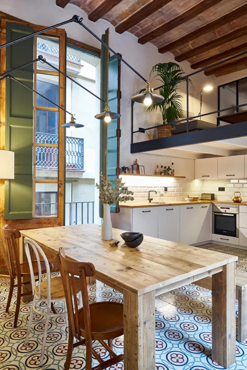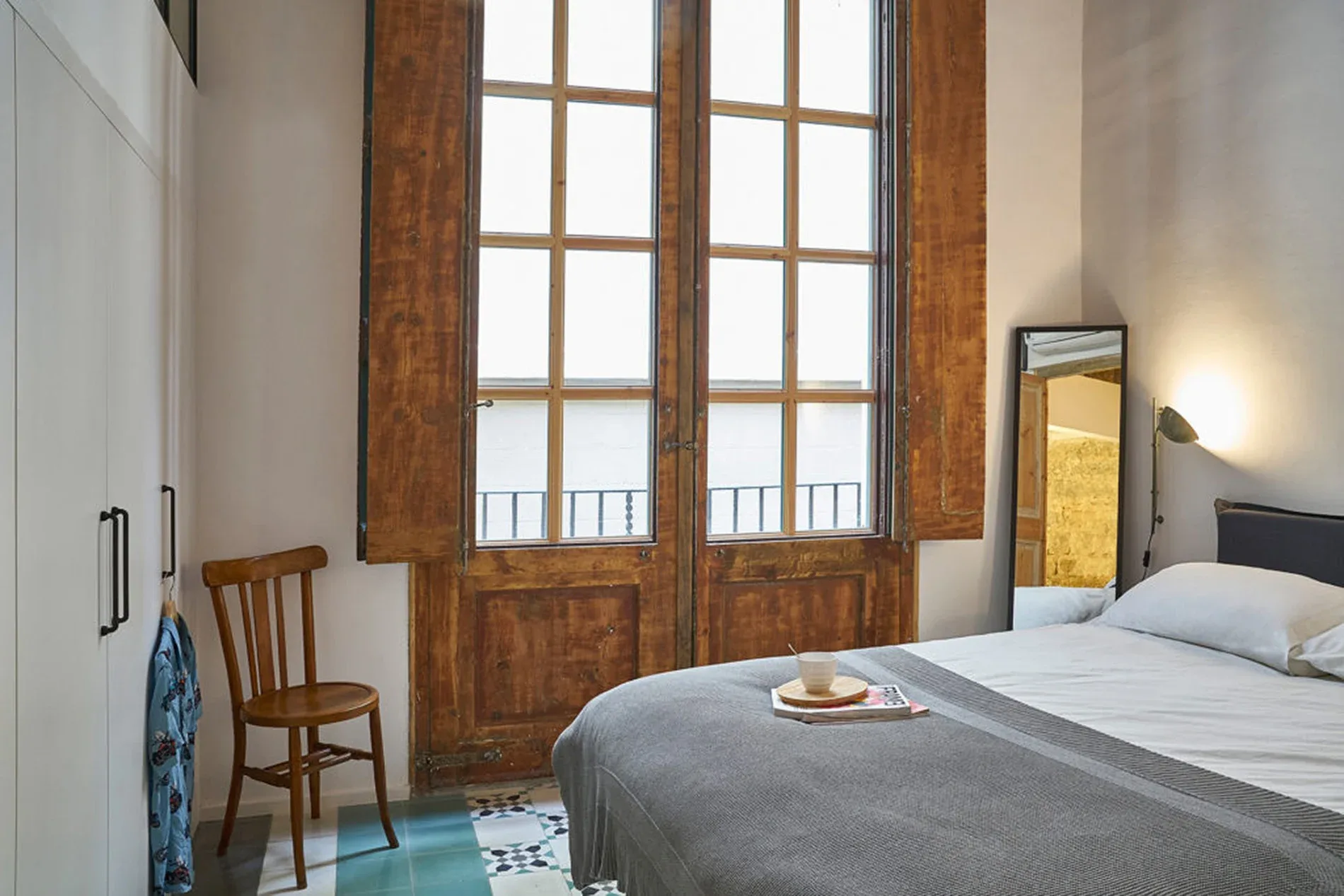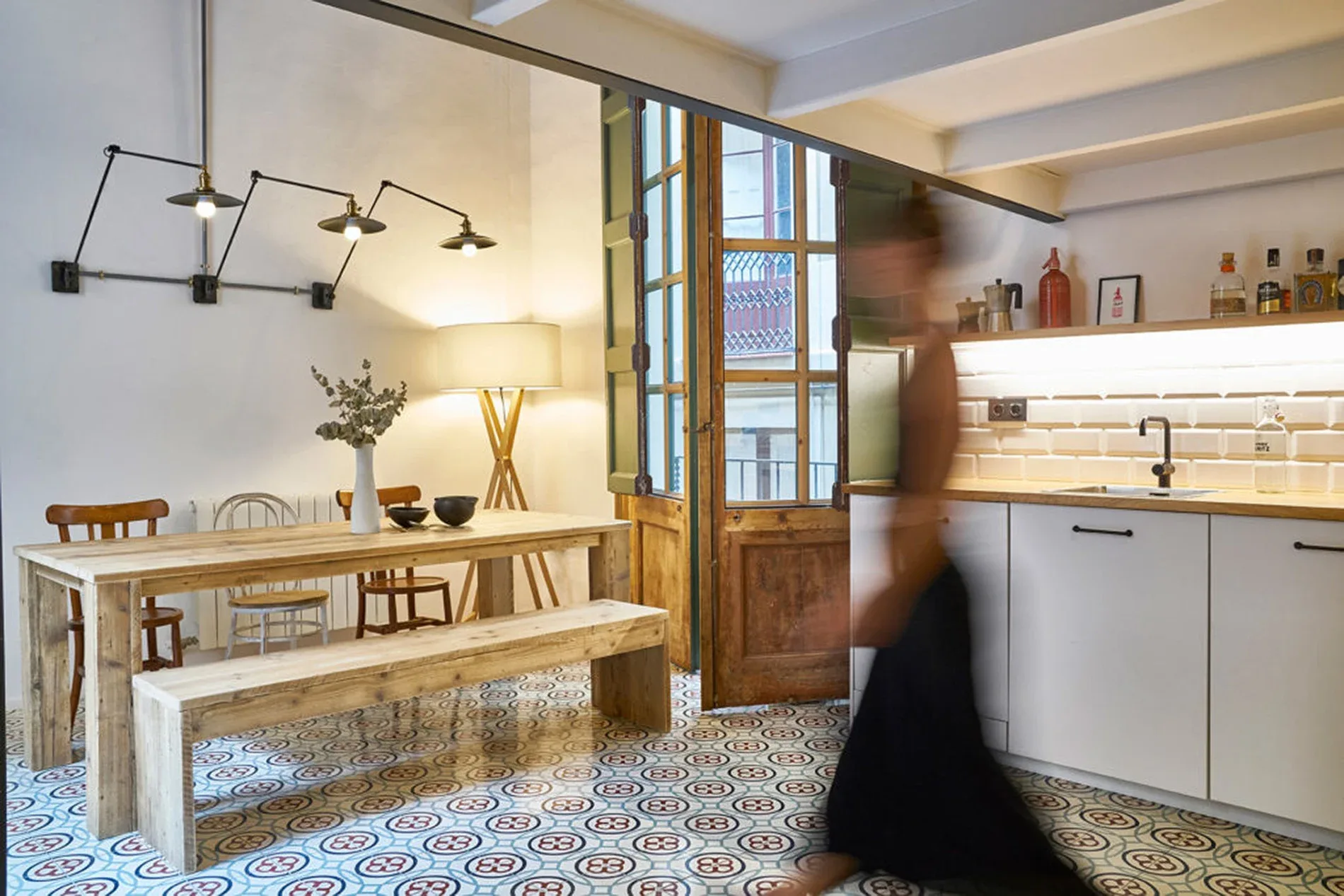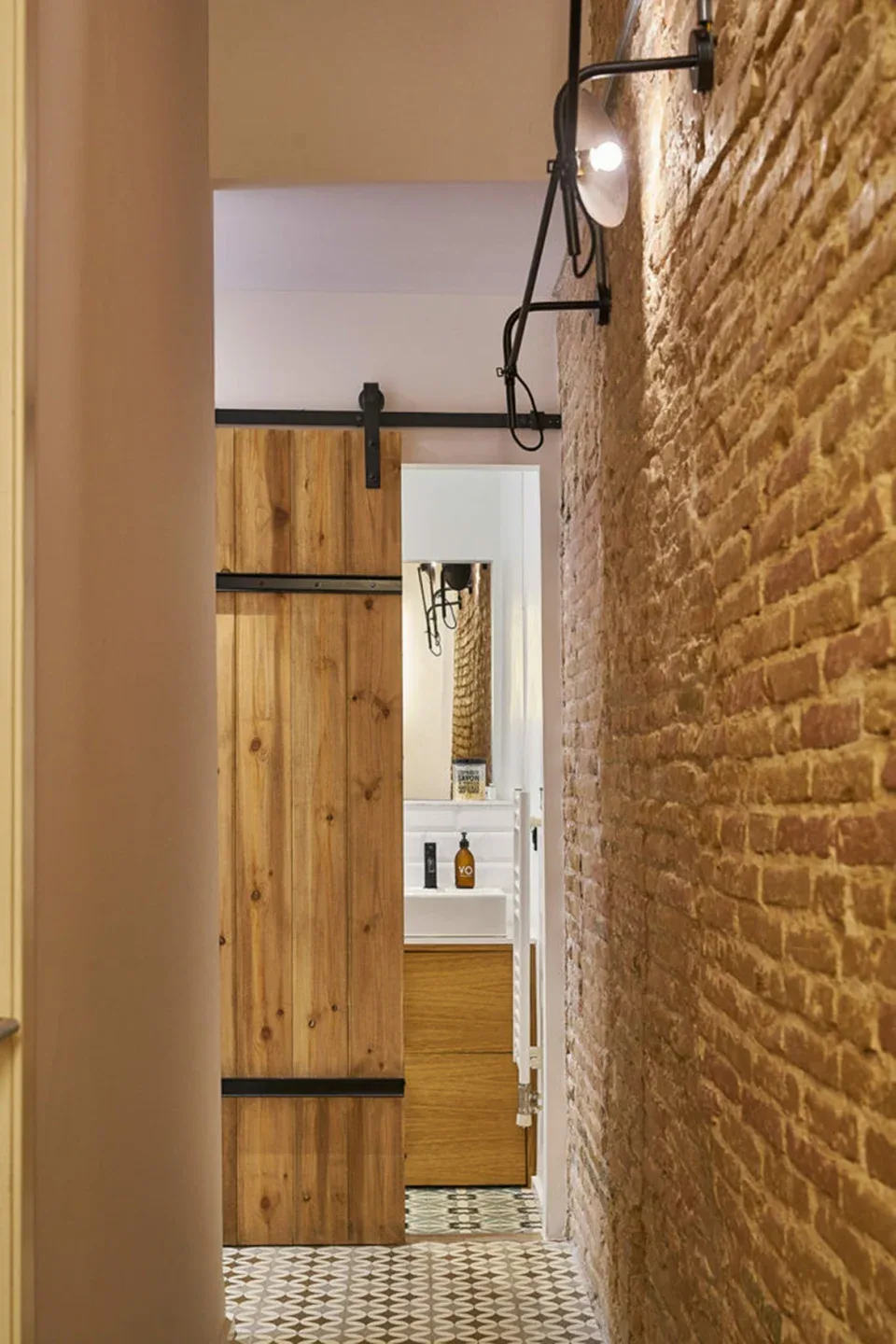 The new design of this old building is inspired by the neighborhood’s history. Outside, the labyrinth–like streets from the Born district experience contrast between the buildings’ shadows and Barcelona’s bright sun light. Inside the flat the same contrast has been applied to materials, lights and colors. Each atmosphere transformation is based on its purpose. The perfect match between old and new, darkness and light, colors and white. Functional furniture and intelligent built-in storage was custom – made to contrast with the uncovered old bricks, stonewalls and ancient wooden doors.