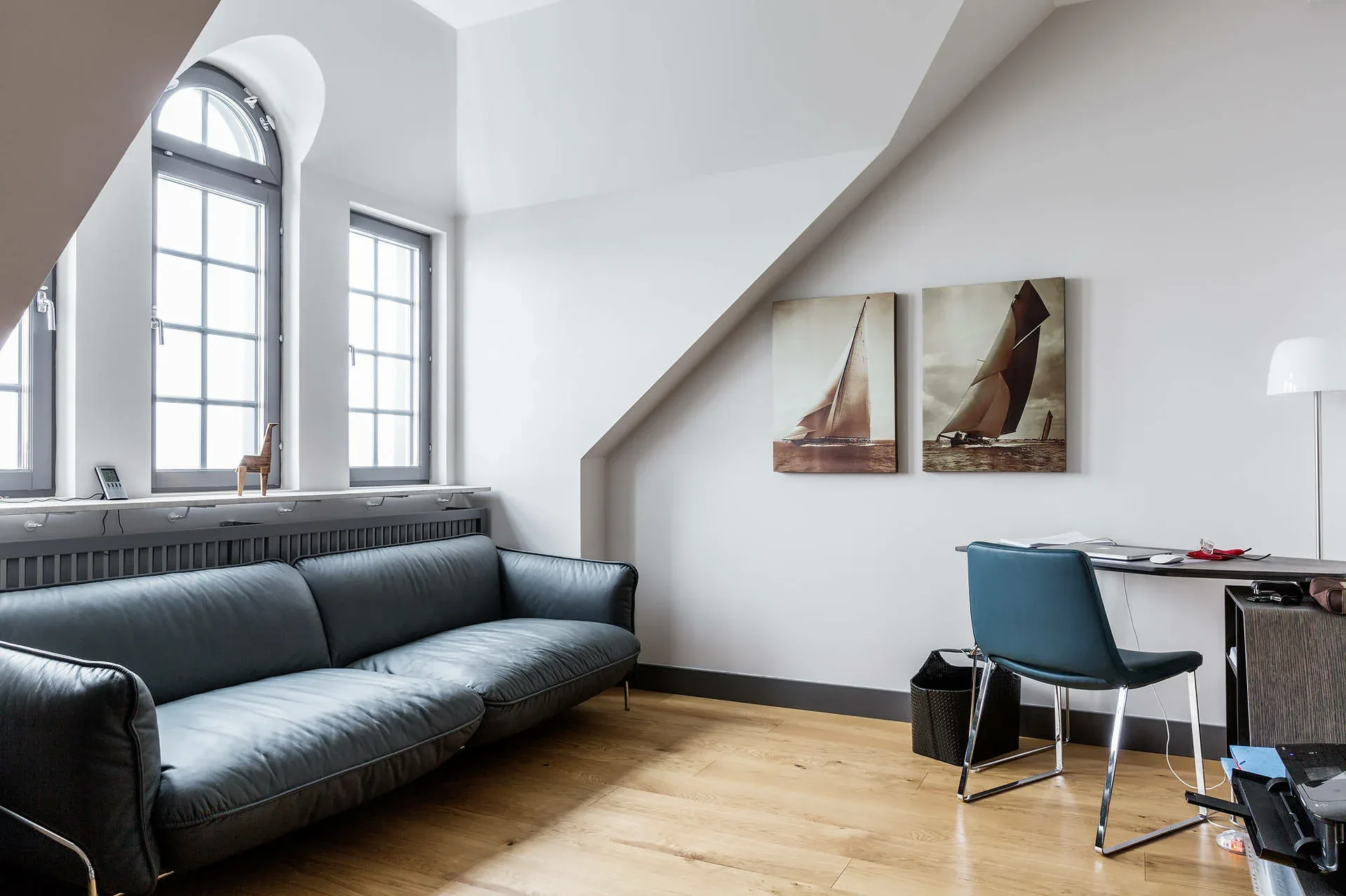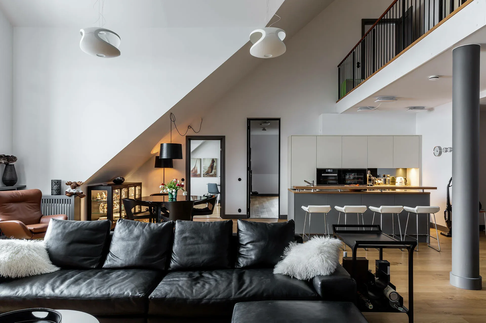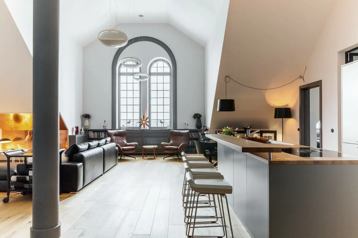 An industrial property, from 1912 with characteristic architecture and classic brick red facade, has been transformed into a high-quality residential building. As the crown of the work, a unique floor of 159 square meters was created with its very own design. This floor is characterized by 5.5 meters of ceiling height, stylish interior design and a majestic view of the water from all rooms. You enjoy sunrise and views of both the inner archipelago and Djurgården. Welcome to beautiful Kvarnholmen and an exclusive home of international class.